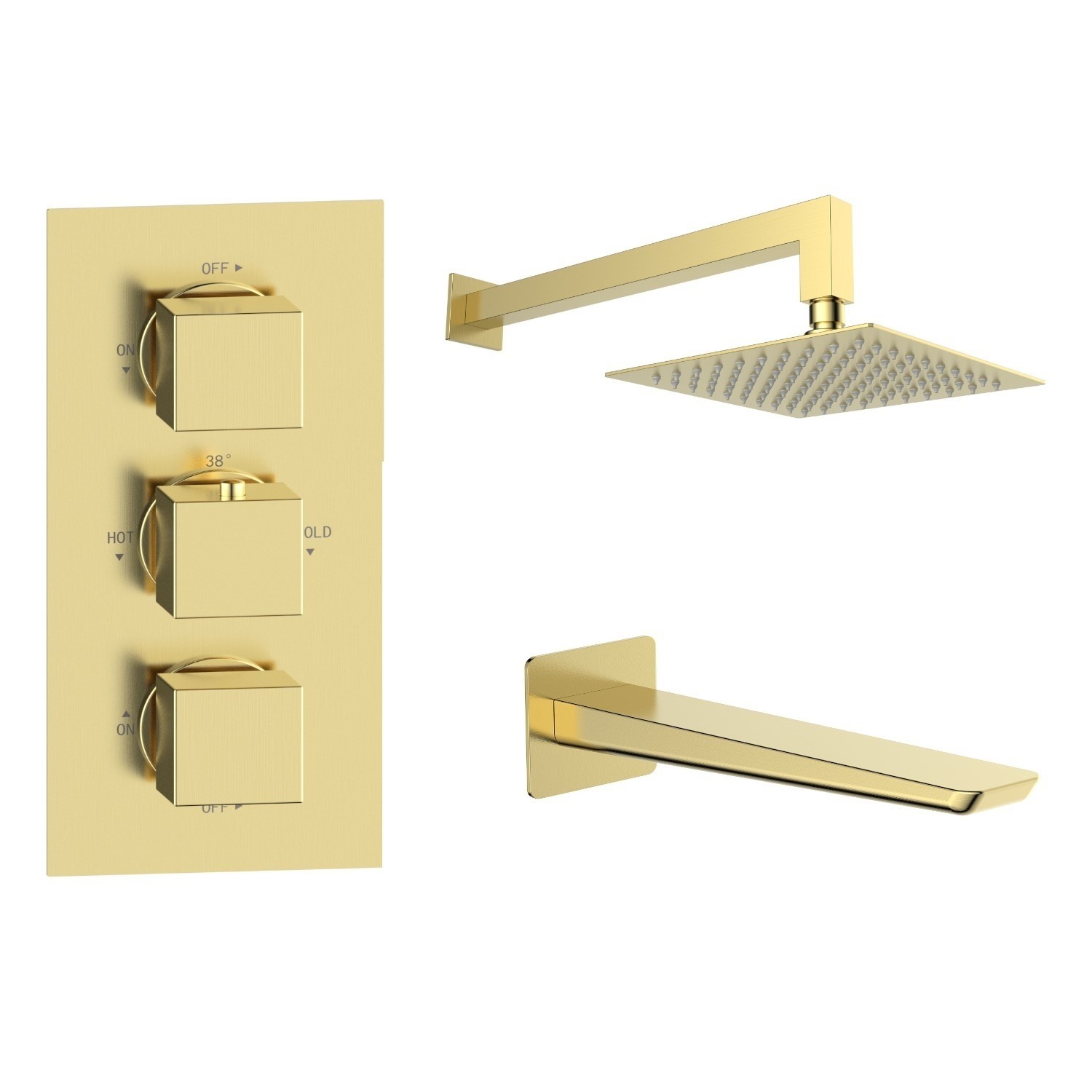Transform your shower experience with this modern combination of the Cube Square Twin Shower Valve and the 250mm Ultra-Slim Square Shower Head. The concealed valve's sleek design and dual outlet functionality provide both aesthetic appeal and practical versatility, allowing you to customise your shower setup with ease.