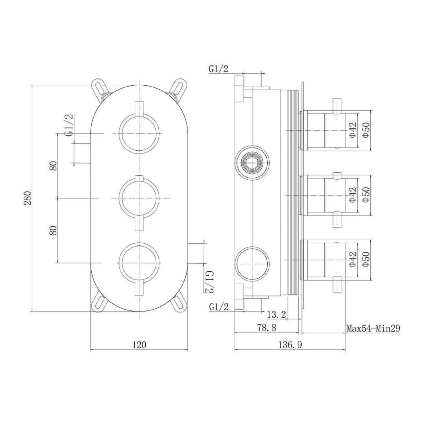 - Overall Dimensions: H280mm x W120mm x D136.9mm