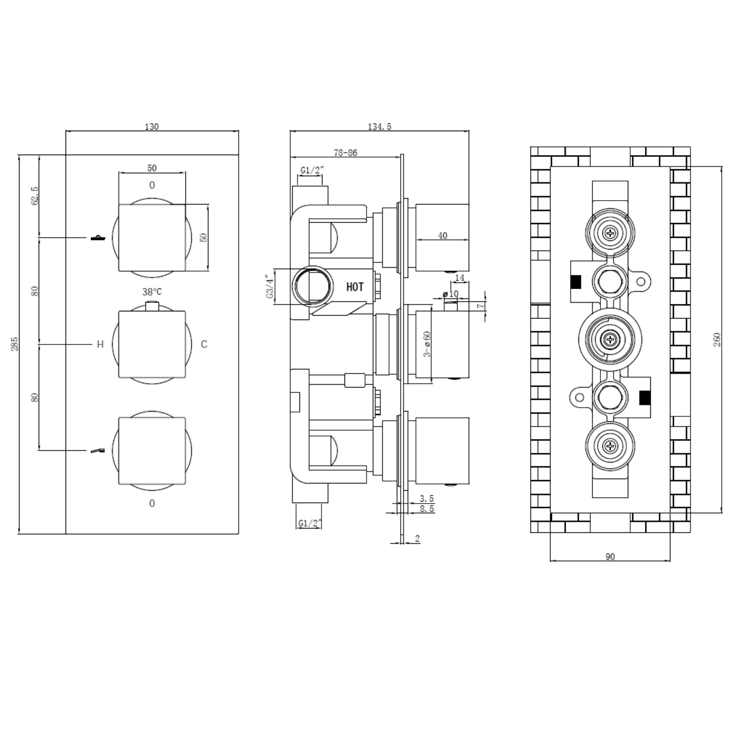 This Zana Brushed Brass Triple Control Shower Set adds a sleek, minimalistic touch to any shower. The thermostatic concealed valve cuts off if the cold water supply fails. It also means that your temperature will remain the same even if a tap is turned on or a toilet is flushed!