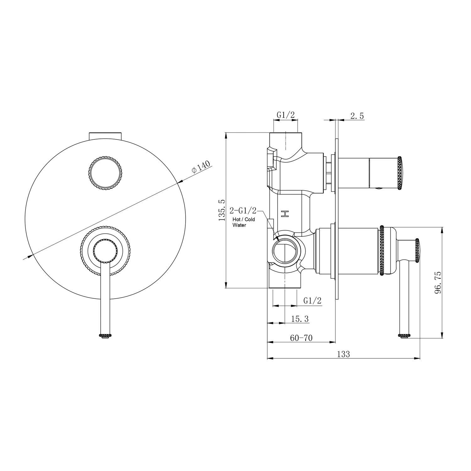 Modern with a Traditional Twist: The sleek round backplate on the valve, minimalist levers, and rainfall head give a contemporary look, while the brushed brass finish, dome shape, and subtle beaded and knurled detailing add timeless classic style.