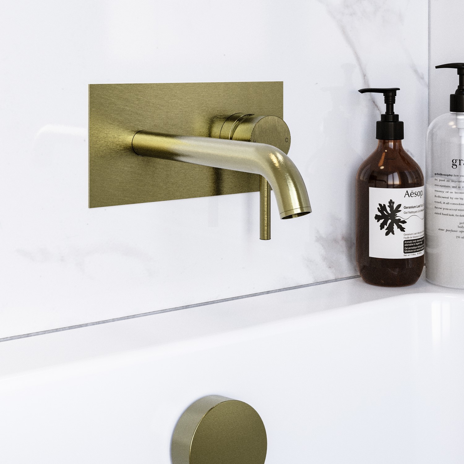Transform your bathroom into a calming spa with the Arissa wall mounted bath mixer tap in brushed brass. Its minimalist round shape and sleek wall-mounted design offer a clean and contemporary look, hiding unsightly pipework behind the wall. Crafted from durable brass with a zinc handle, it features single-lever control and ceramic disc technology for reliable, leak-free performance. This product has a PVD coating, which is highly durable and is resistant to wear and tarnishing. Following the user manual for cleaning and maintenance helps the finish to remain like new! With matching items in the Arissa range, this tap adds cohesion and elegance to any modern bathroom. Backed by a 2-year warranty, it’s the ideal blend of style and functionality.