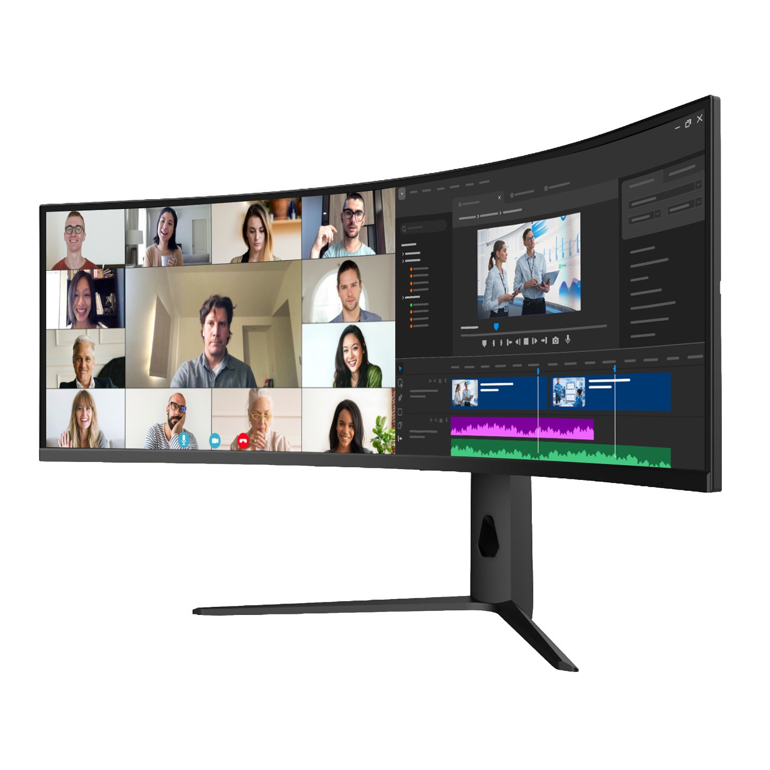 The electriQ 49" Ultrawide USB-C Monitor is a high-performance solution for professionals looking to replace cluttered multi-monitor setups. Its massive 5120x1440 Dual Quad HD resolution provides a seamless view, perfect for managing large datasets, complex timelines, or several windows side-by-side. The 32:9 ultra-wide format offers the screen real estate of two 27-inch displays without a central bezel blocking your view.