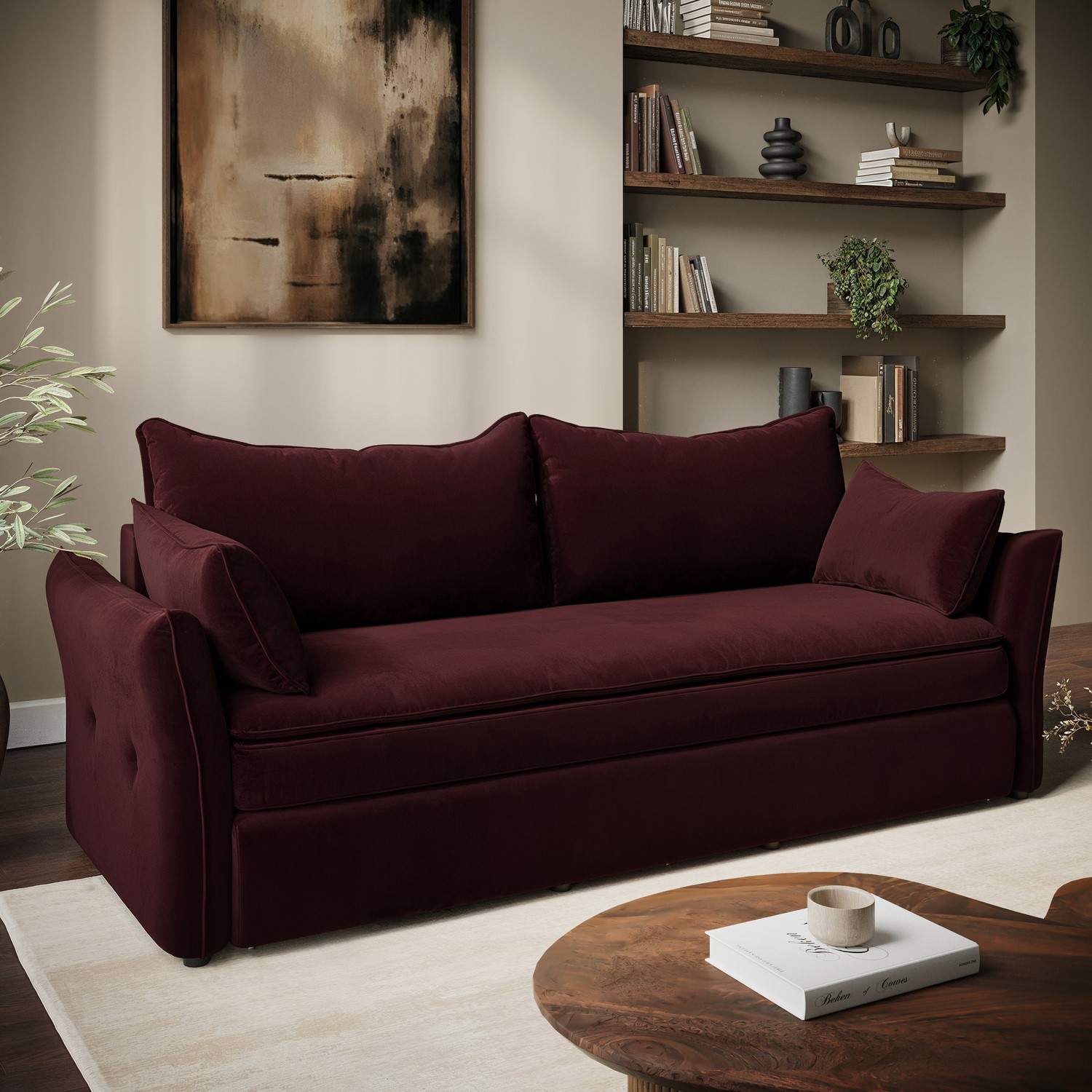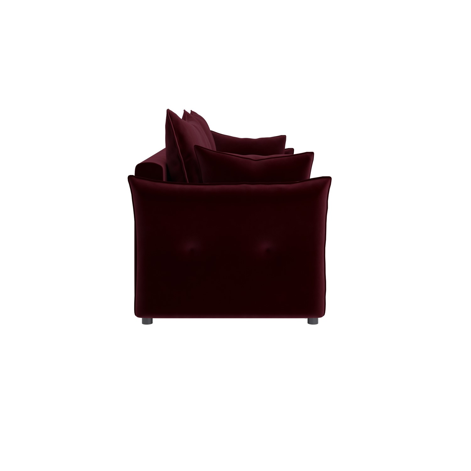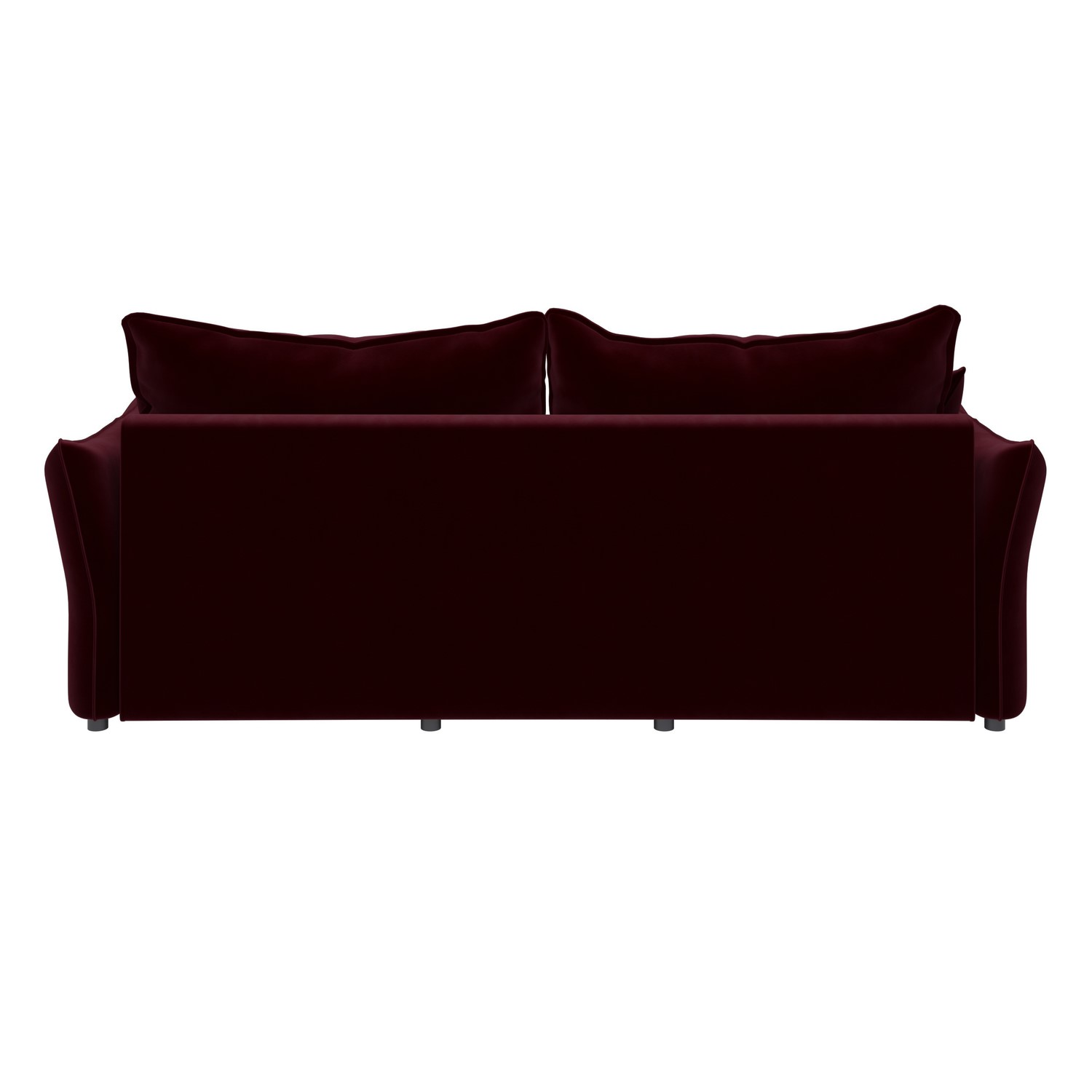 Be perfectly prepared for overnight guests with the Gaia Futon Sofa Bed in Burgundy Velvet. Easily transform the 3-seater sofa into a bed with the simple pull-out mechanism. This fold-out sofa bed is complete with a built-in memory foam mattress top, creating a comfortable double bed for your guests. This sofa bed features soft-to-the-touch velvet upholstery that brings warmth and a splash of colour to the room. Under the seats you'll find a hidden storage compartment, perfect for storing your bedding and any other essentials. For additional comfort and support, this sofa bed is foam and fiber-filled and comes with 2 matching throw cushions.