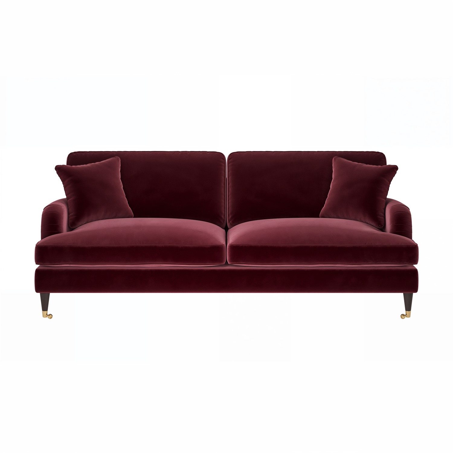 Premium Velvet Fabric Upholstery: Upholstered in a high-quality and vibrant burgundy velvet fabric, the Payton Sofa is soft to the touch, offering a comfortable and inviting seating experience. The bold red tone complements a variety of colour palettes, making it easy to integrate into any home.