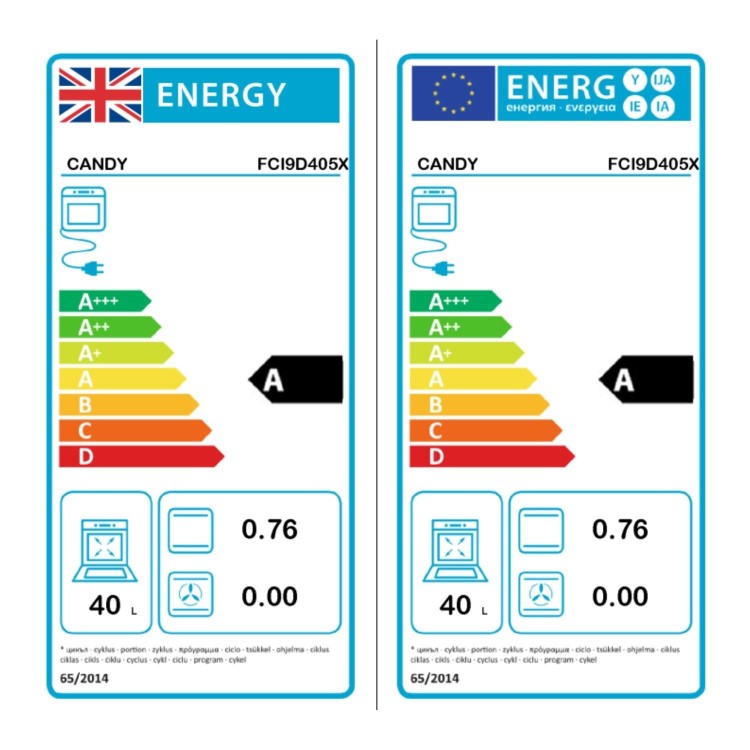 - Main oven capacity: 65L