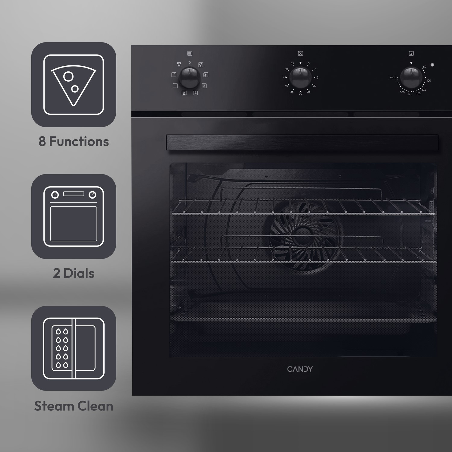 This Black Candy Idea single oven combines reliable performance with modern functionality, making it a practical addition to any kitchen. With a 65L capacity, it provides ample space for everyday cooking, whether you're preparing family meals, roasting, or baking multiple dishes at once. Rated A+ for energy efficiency, it delivers powerful cooking performance while helping to keep energy consumption low. The LED programmer allows you to easily monitor and manage cooking times, ensuring accurate results with every dish. The combination of rotary and touch controls offers intuitive operation, giving you both precise adjustment and a responsive modern interface. Inside, the easy clean enamel interior helps prevent grease and food build-up, making post-cooking maintenance quick and simple. Finished in a premium black aesthetic, this oven offers a timeless design that fits seamlessly into both modern and traditional kitchens, delivering dependable performance and everyday convenience.