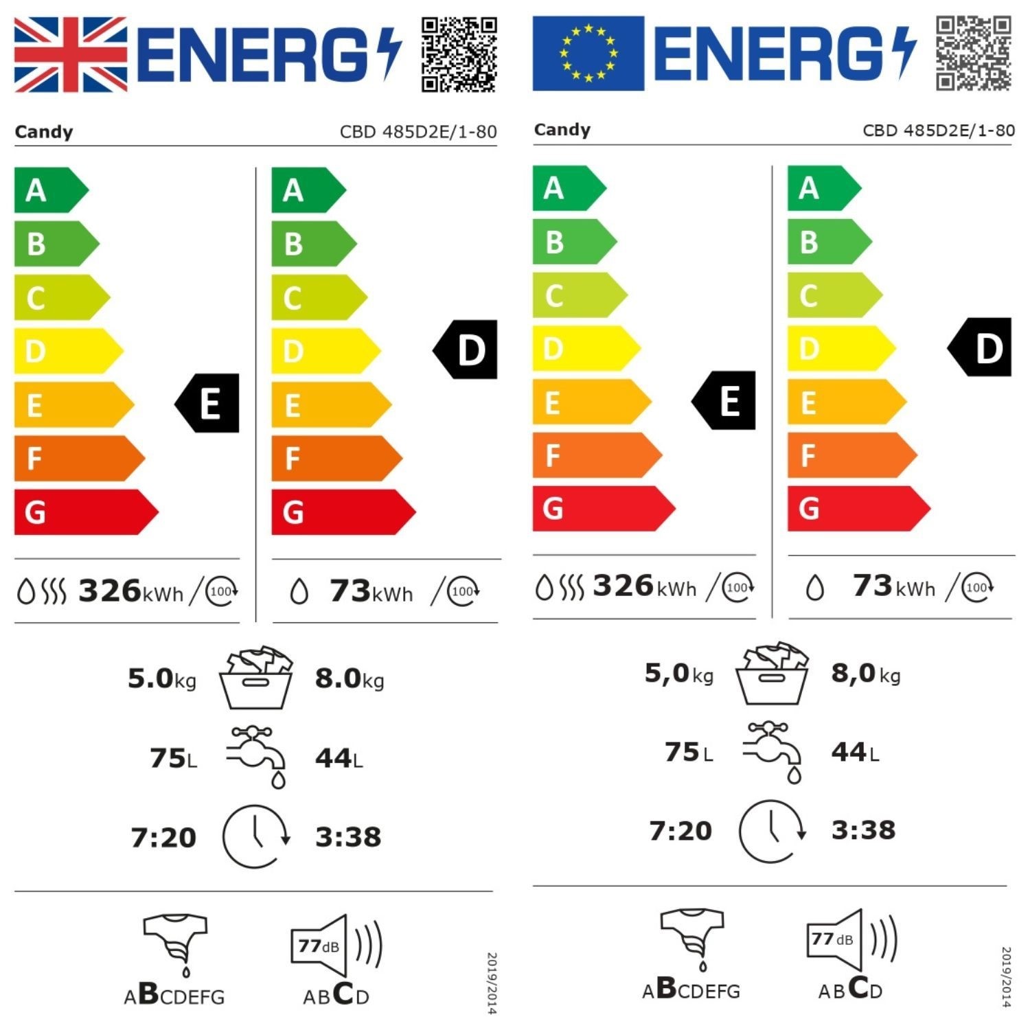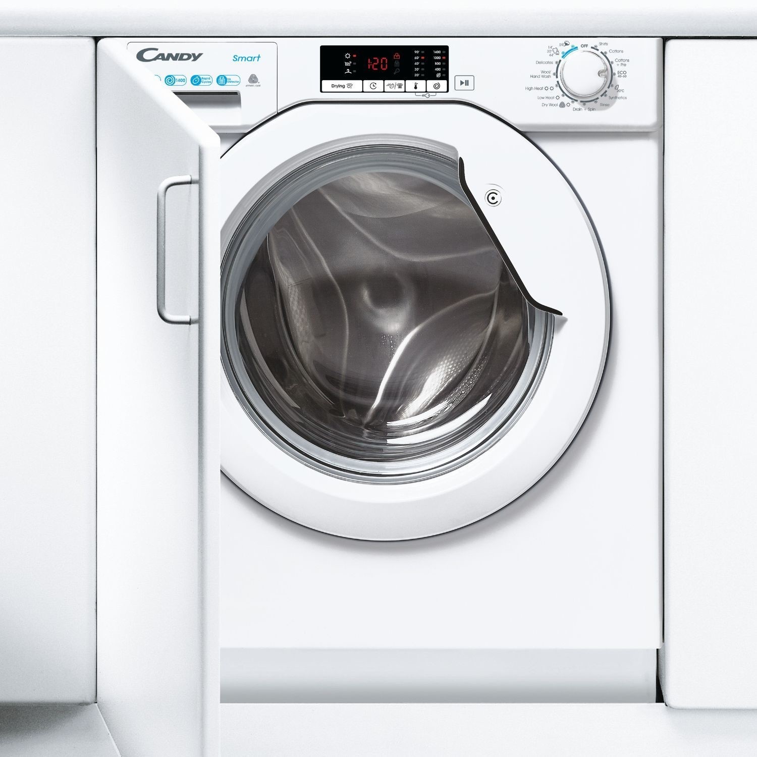 Make laundry simple with the Candy CBD495D2WE/1-80 integrated washer dryer. Its large 8kg wash and 5kg dry capacity means you can clean more clothes at once, perfect for busy family loads or larger items. Need clothes clean fast? The six rapid wash programmes get your items ready quickly, saving you time. Plus, the clever Kilo Detector uses just the right amount of water and energy for each load. This helps you save money on your bills and is better for the planet.
