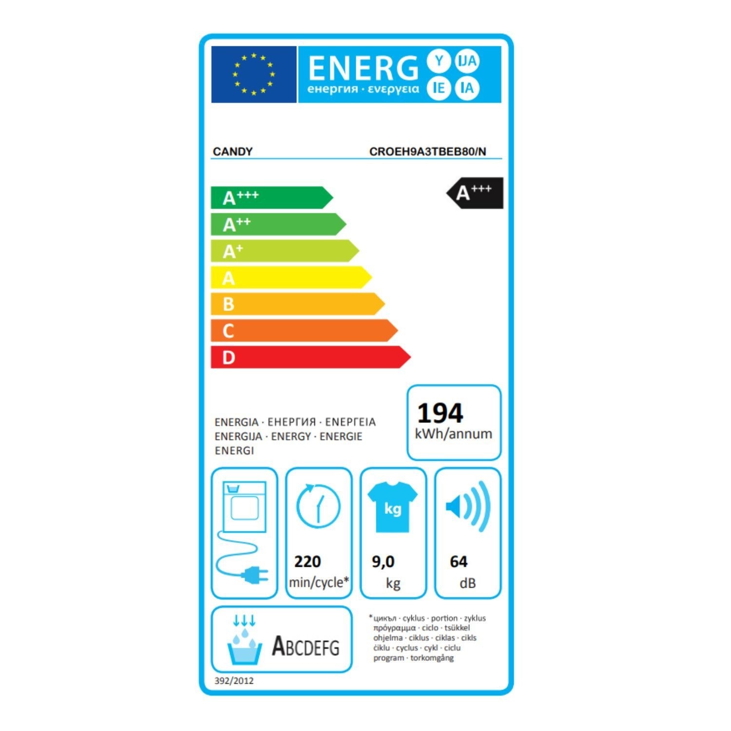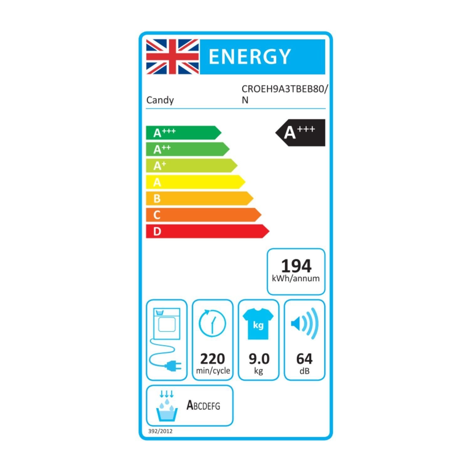Make laundry day simpler with the Candy Smart Pro CROEH9A3TBEB80/N heat pump tumble dryer. Its large 9kg drum capacity means you can dry more clothes at once, perfect for family loads or bedding. Thanks to its A+++ energy rating and clever heat pump tech, you'll save money on your electricity bills and your clothes will be looked after gently. Control it easily from your phone with the hOn app*, letting you start cycles from anywhere. The app can even suggest the best drying mode for your load with Snap&Dry, and smart sensor drying stops the machine when your clothes are perfectly dry, saving energy and protecting them from heat.
