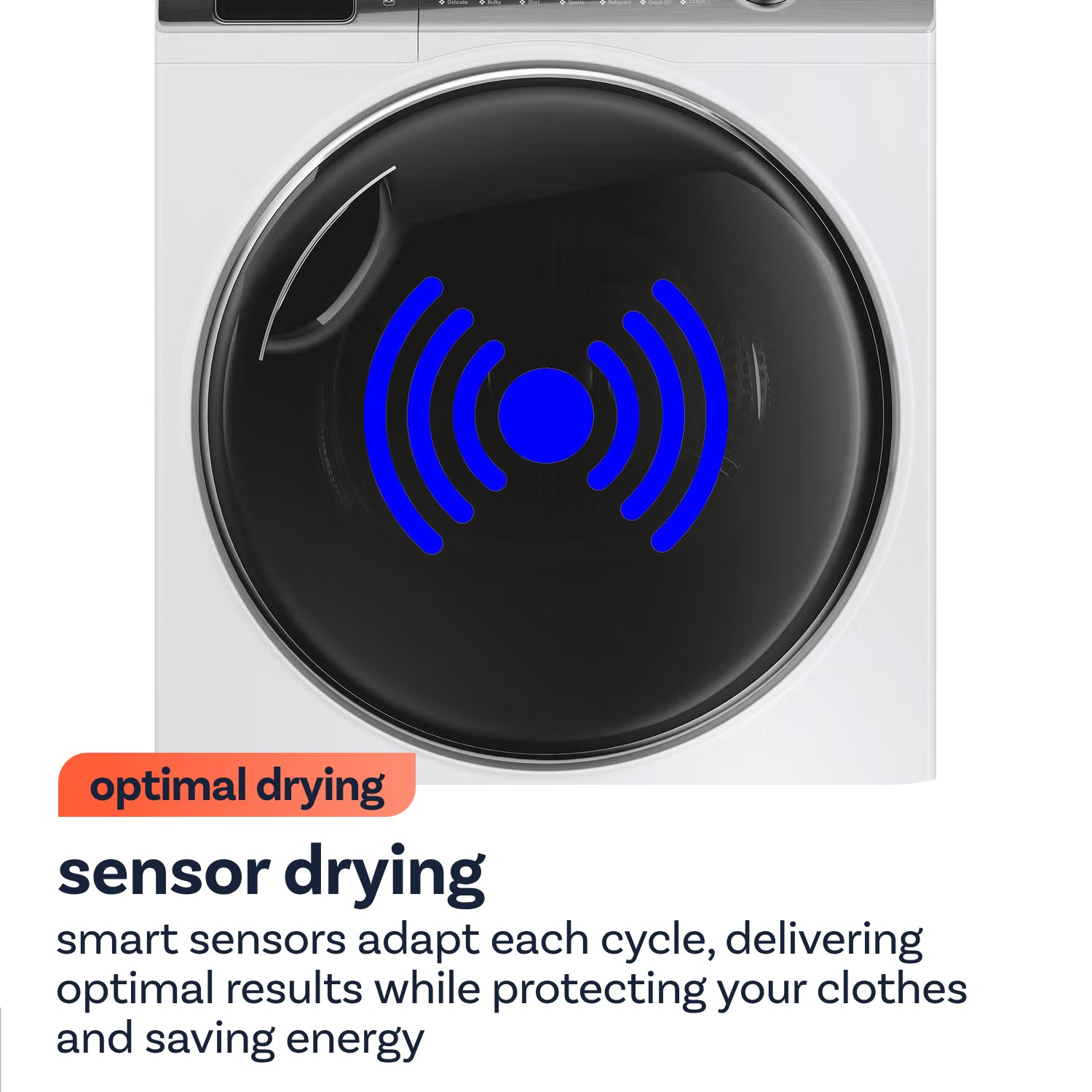 Sensor Drying gives you perfectly dry clothes every time. It senses moisture, stopping the cycle when ready. This prevents over-drying, protecting your fabrics and saving energy on every load.