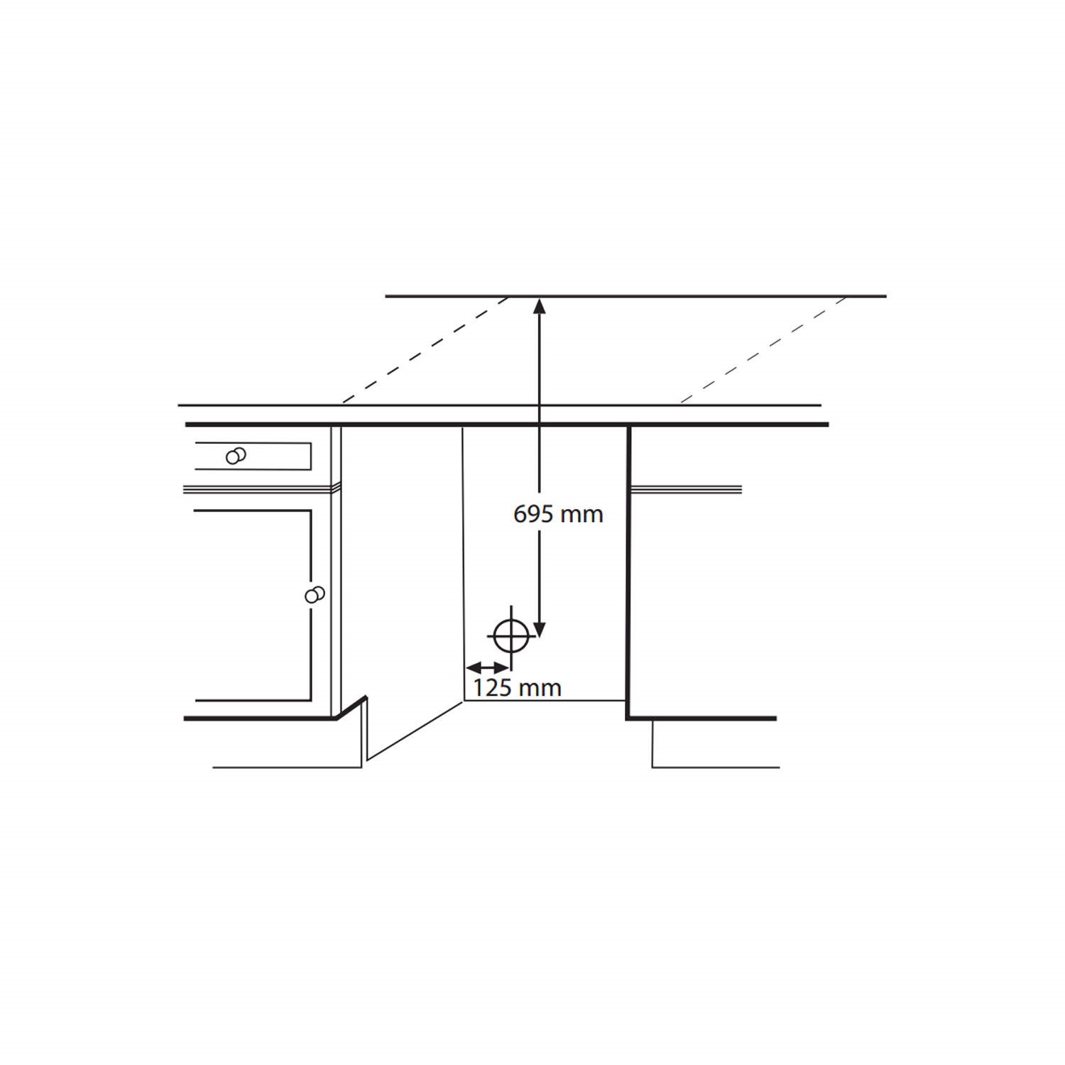The air vent at the front of the dryer must never be covered or blocked in any way, as this will affect the performance and could cause it to overheat. Therefore, there plinth in front of the dryer must be cut out to accommodate the air vent grill located at the bottom front of the tumble dyer: