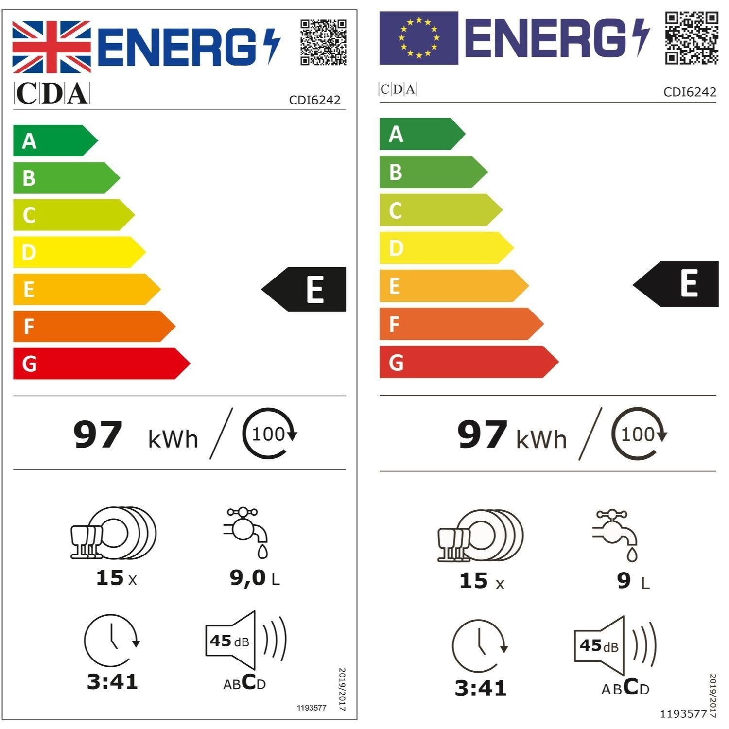 The CDA CDI6242 integrated full size dishwasher makes cleaning up simple. With space for 15 place settings, it easily handles all your dishes, from daily meals to bigger gatherings. The Aquazone feature uses strong water jets where needed, so your pots come out spotless and your delicate glasses are safe. Plus, the Hygiene Pro give you extra clean dishes and a fresher kitchen.