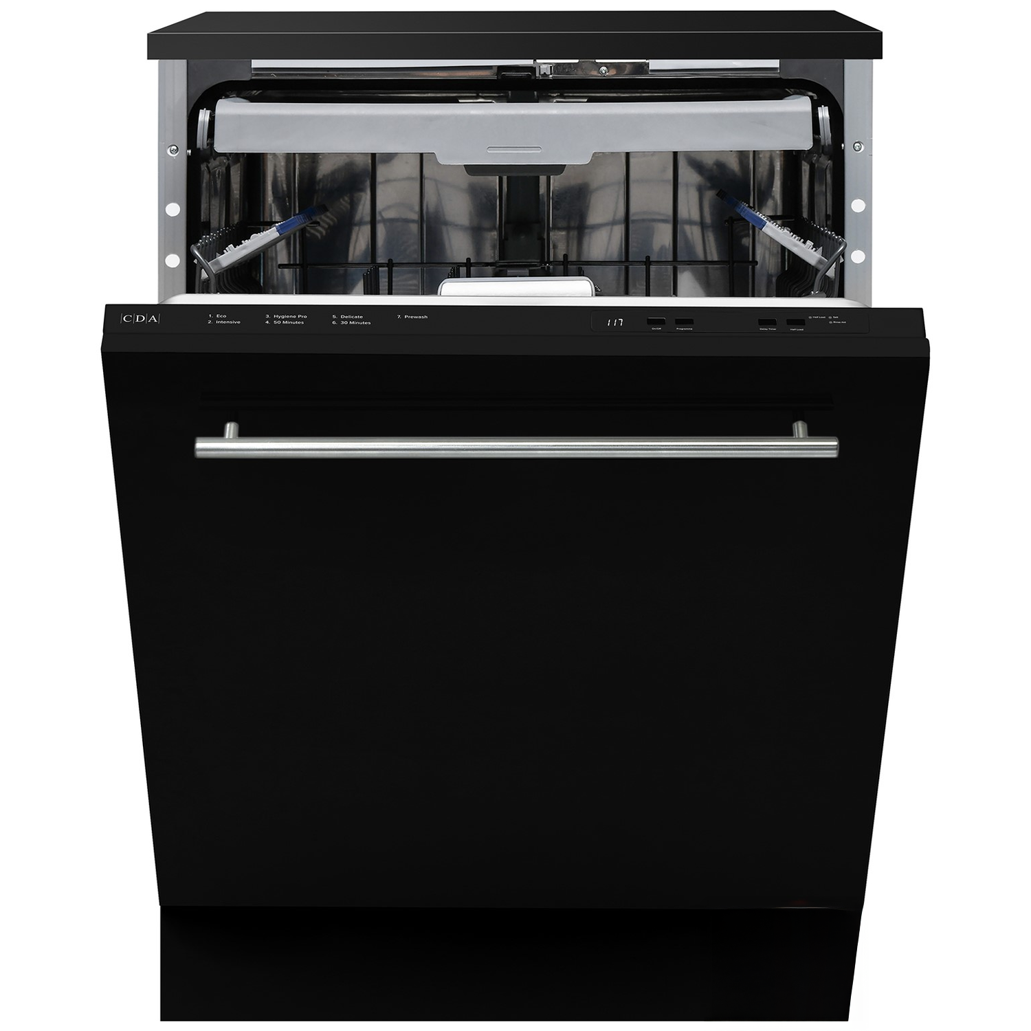 This CDA dishwasher is packed with features to make your life easier. Save on bills by using the Eco programme, or wash smaller loads with the half-load function. The handy cutlery tray and height-adjustable upper basket mean you can fit all sorts of items, from tall glasses to big pots. A green or red light shines on the floor to show you when it's running, and the start delay timer lets you wash when it suits you. Its sliding door hinges ensure it fits neatly behind your kitchen cupboard door for a smooth, clean look.