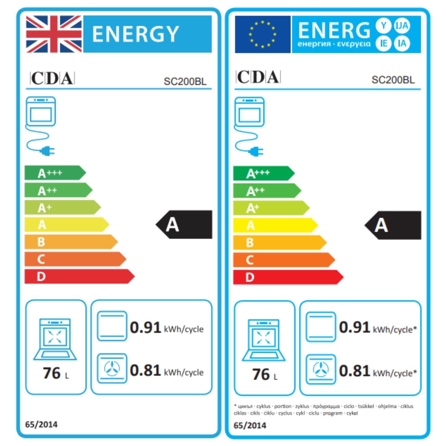 The SC200 oven has an extra-large 76L capacity and easy-to-operate rotary controls. The oven has 7 oven functions, including fan, fan-assisted, conventional, and grill settings. The oven also features a touch control digital clock and timer, as well as a removable door and inner glass for easy cleaning.