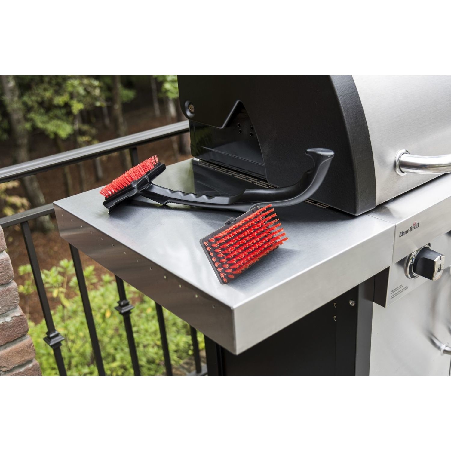 Soft bristle brushes are great for cleaning porcelain grill grates that can’t be cleaned with a metal or wire brush. This replacement head fits the Char-Broil Cool-CleanBrush (product number 140 533) .