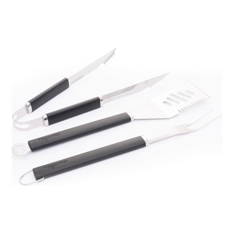 This 3-piece grill utensil set gives every grill event that certain something extra! Make sure you have everything you need with this essential accessory. The set consists of a turner with integrated bottle opener, a fork and tongs – all made of durable stainless steel, so you can use these grill tools for plenty of grill sessions.