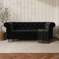 The Ophelia is the perfect contemporary twist on a classic British design. This Chesterfield sofa is upholstered in a beautiful charcoal grey colour that complements any interior. It features decorative gold castors on the front legs whilst the back legs are wheel free.