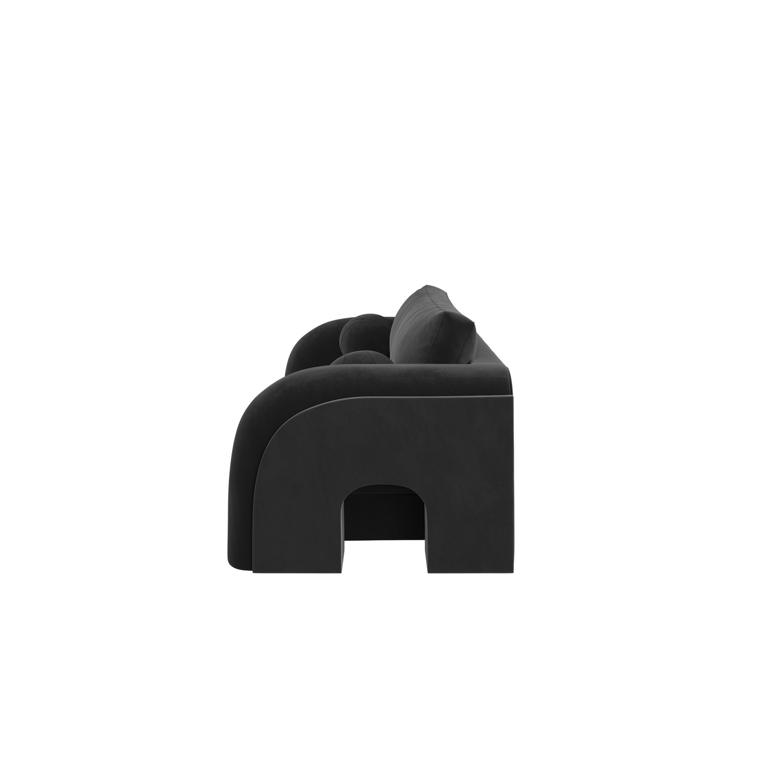 The Aurelia sofa boasts a luxurious, modern design and is beautifully upholstered in a soft charcoal grey velvet, creating a statement look in any living room. It has a unique curved ball arm design with recessed cut-out details, making it a true standout piece. The two ball scatter cushions allow you to tailor your seating position, and the seat and back cushions are filled with foam for optimum comfort and support. The charcoal grey velvet is both soft and durable, while the back cushions can be removed for easy cleaning and maintenance. It arrives fully assembled for you to enjoy it's comfort and style instantly.