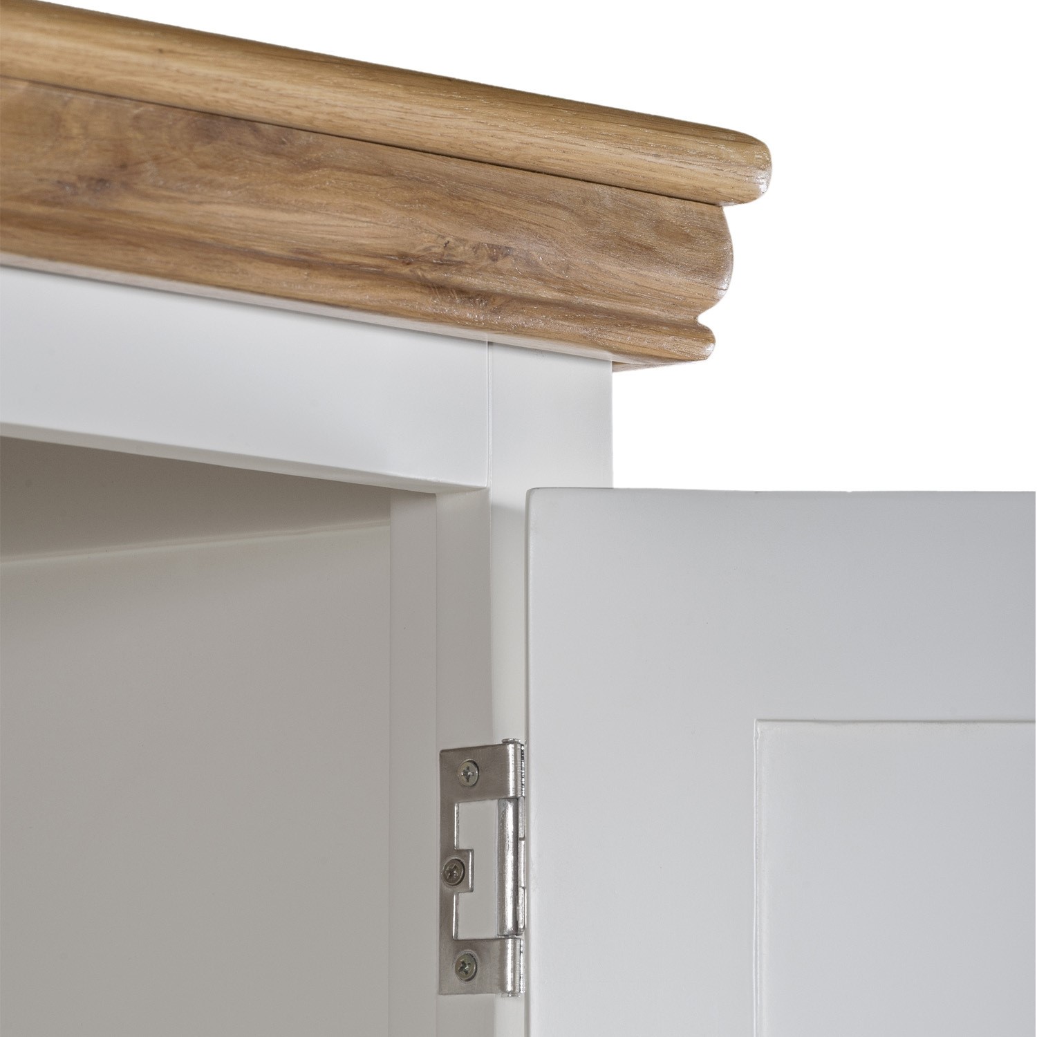This stylish design has been crafted with quality solid oak and solid acacia wood, it will last the test of time alongside its timeless design. The delicate cream finish gives the wardrobe a fresh look and it contrasts beautifully with the thick solid oak top, which delivers a real sense of quality and a touch of grandeur thanks to the cornice detailing.