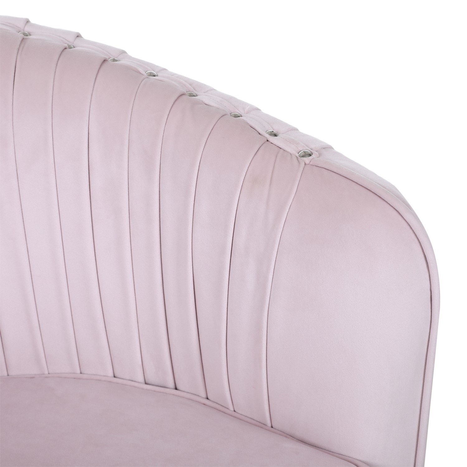 - The blush pink velvet upholstery is soft and luxurious