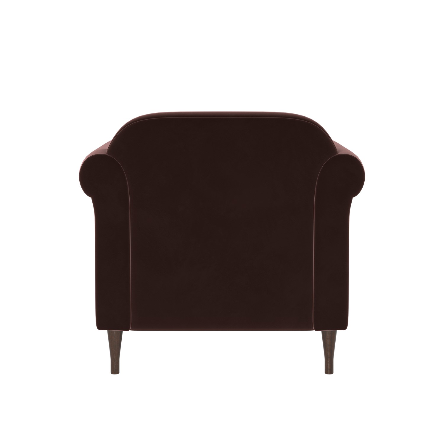 The Ramona traditional armchair in chocolate brown velvet combines timeless elegance with everyday comfort, making it a standout piece for any living room or reading corner. Upholstered in an inviting, durable chocolate brown velvet, it brings warmth, depth, and sophistication to your space. Featuring classic scroll arms, turned wooden legs with castors, and a gently curved silhouette, it beautifully blends traditional design with modern appeal. The foam and fibre-filled seat offers exceptional comfort and support, while the removable cushion cover ensures easy maintenance. Perfect as a statement piece or part of a coordinated set, the Ramona armchair adds charm, character, and lasting style to your home.
