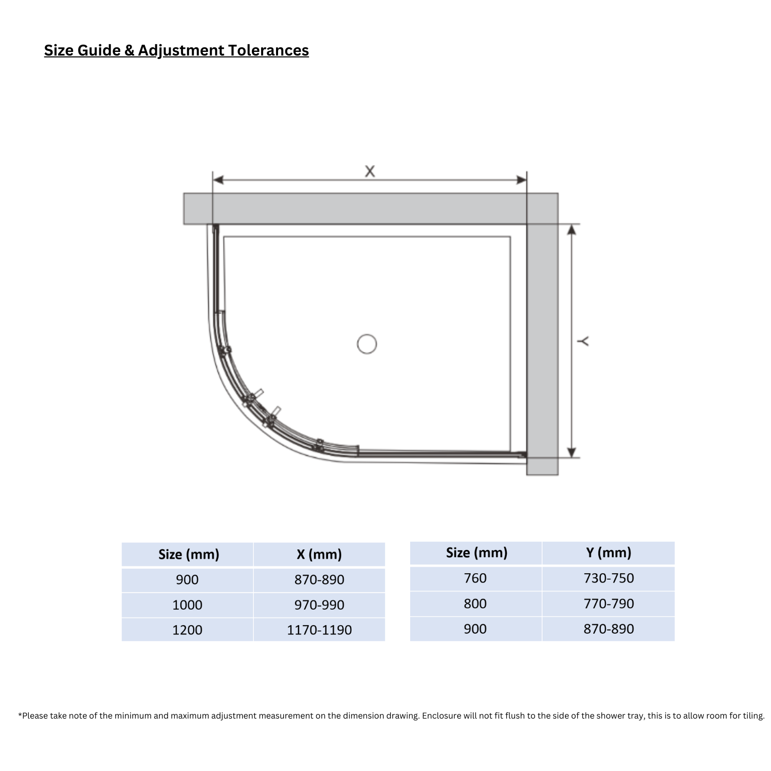 • Offset quadrant shower enclosure shape perfect for ensuites and small bathrooms