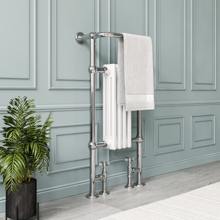 The Regent floor standing radiator is an elegant heating option for the most stylish traditional bathroom. It measures 952 x 479 x 235mm and outputs 1386 BTUs, which will provide plenty warmth to keep your towels warm and heat your room efficiently. This traditional towel radiator is made from mild steel and features a chrome finish. Plus, it comes with a 2 year guarantee