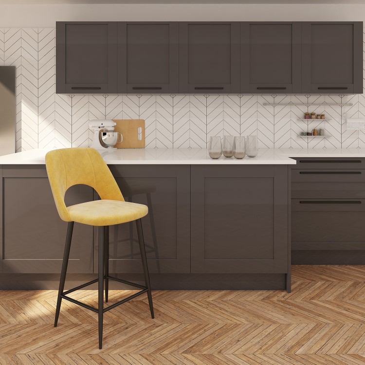 Home bar or breakfast bar, the Colbie bar stool is the perfect addition to round off your look. Sophisticated in design, it provides the finishing touch you've been striving for. Upholstered in a textured chenille yellow fabric and finished off with sleek black legs, this bar stool offers a timeless design and comfortable dining experience.