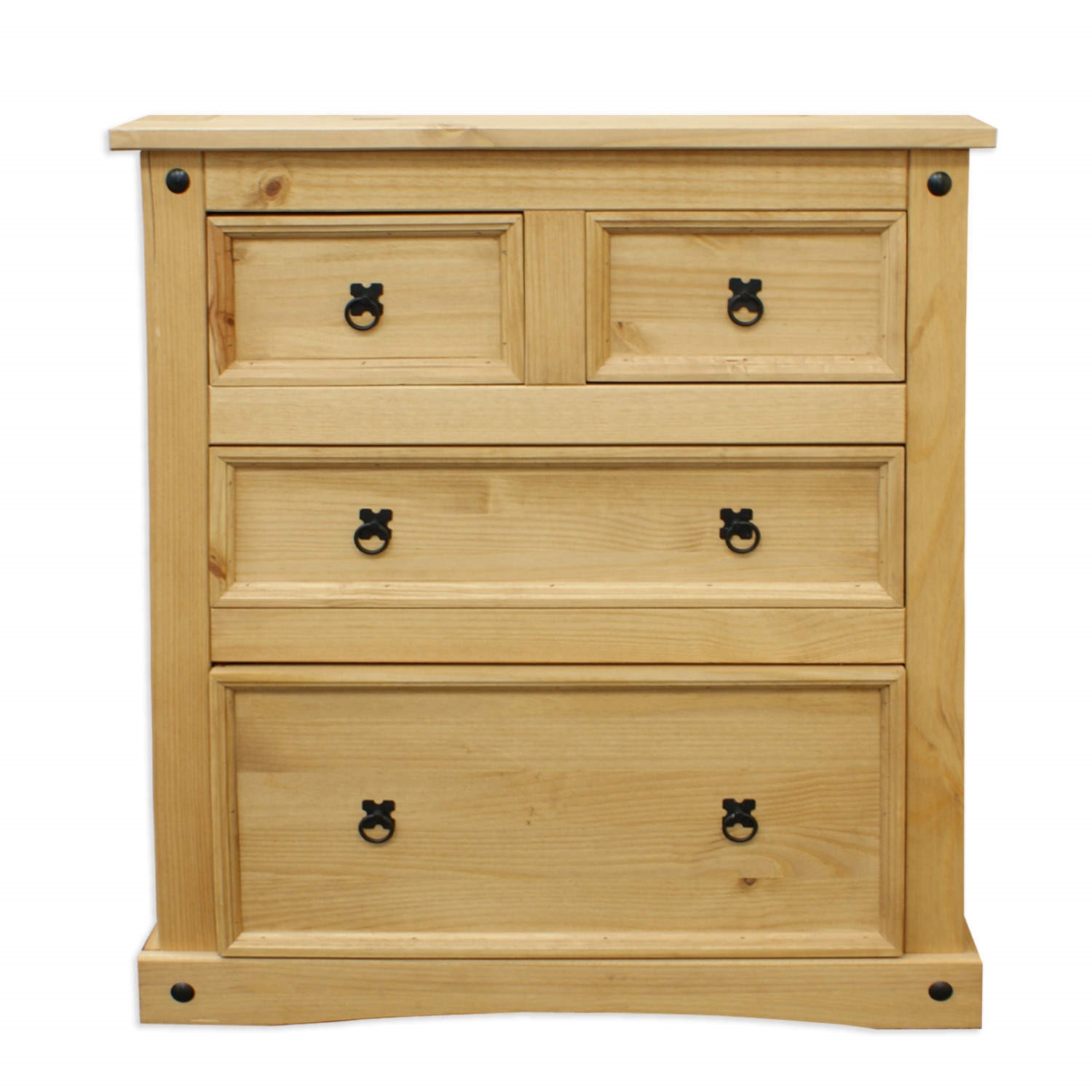 Constructed from solid pine the Corona 2+2 drawer chest provides you with a hardwearing, sturdy piece of storage. The backboard and drawer base are made from thick, solid MDF. Complete with tough solid pine drawer runners and metal, black finished handles, hinges and decorative studs.
