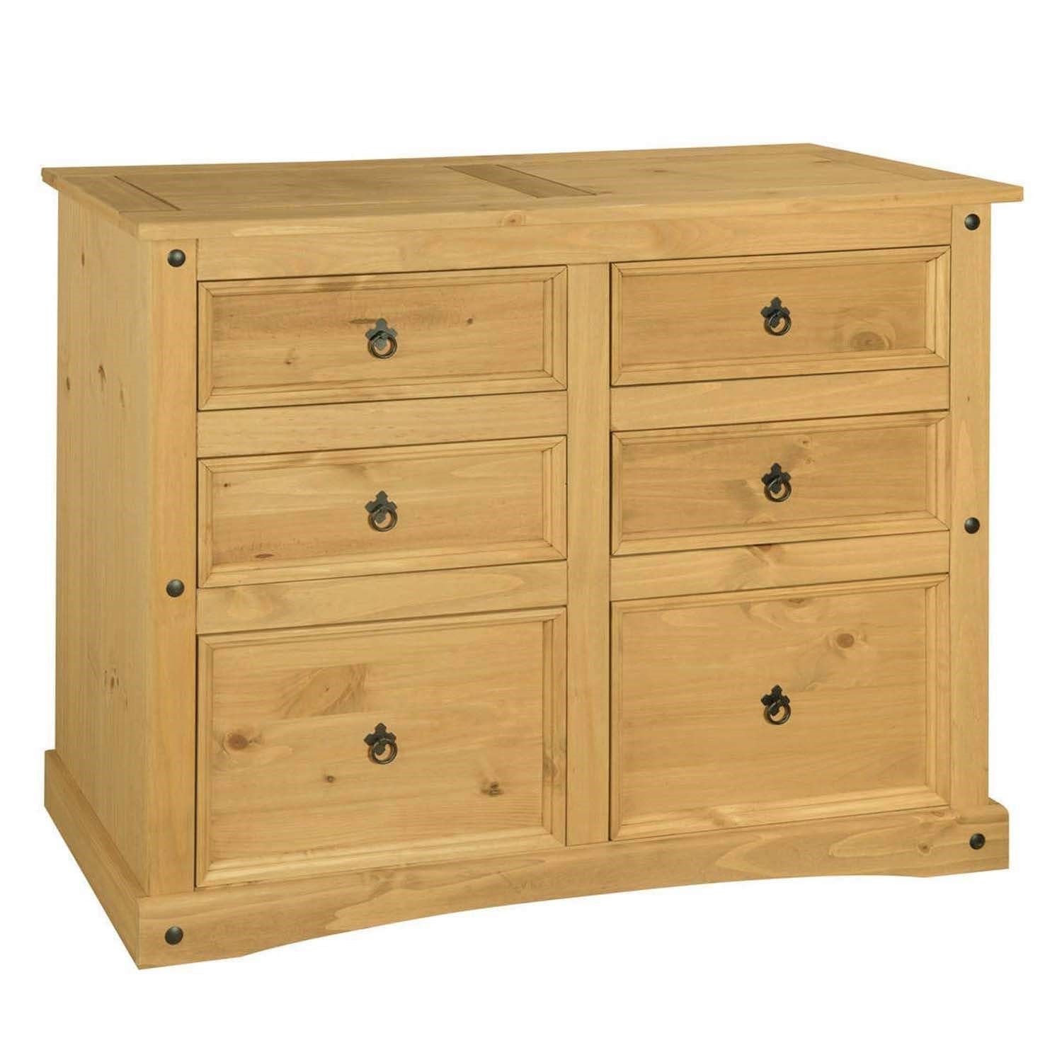 Split into six drawers this Corona chest gives you plenty of space to organise your folded items. The four top drawers are great for tops, socks and under garments whilst the two bottom drawers are a bit deeper, making them ideal for bulkier items like jumpers and jeans. This chest sits at the perfect height for you to place a bedroom TV upon or to simply use as display space.