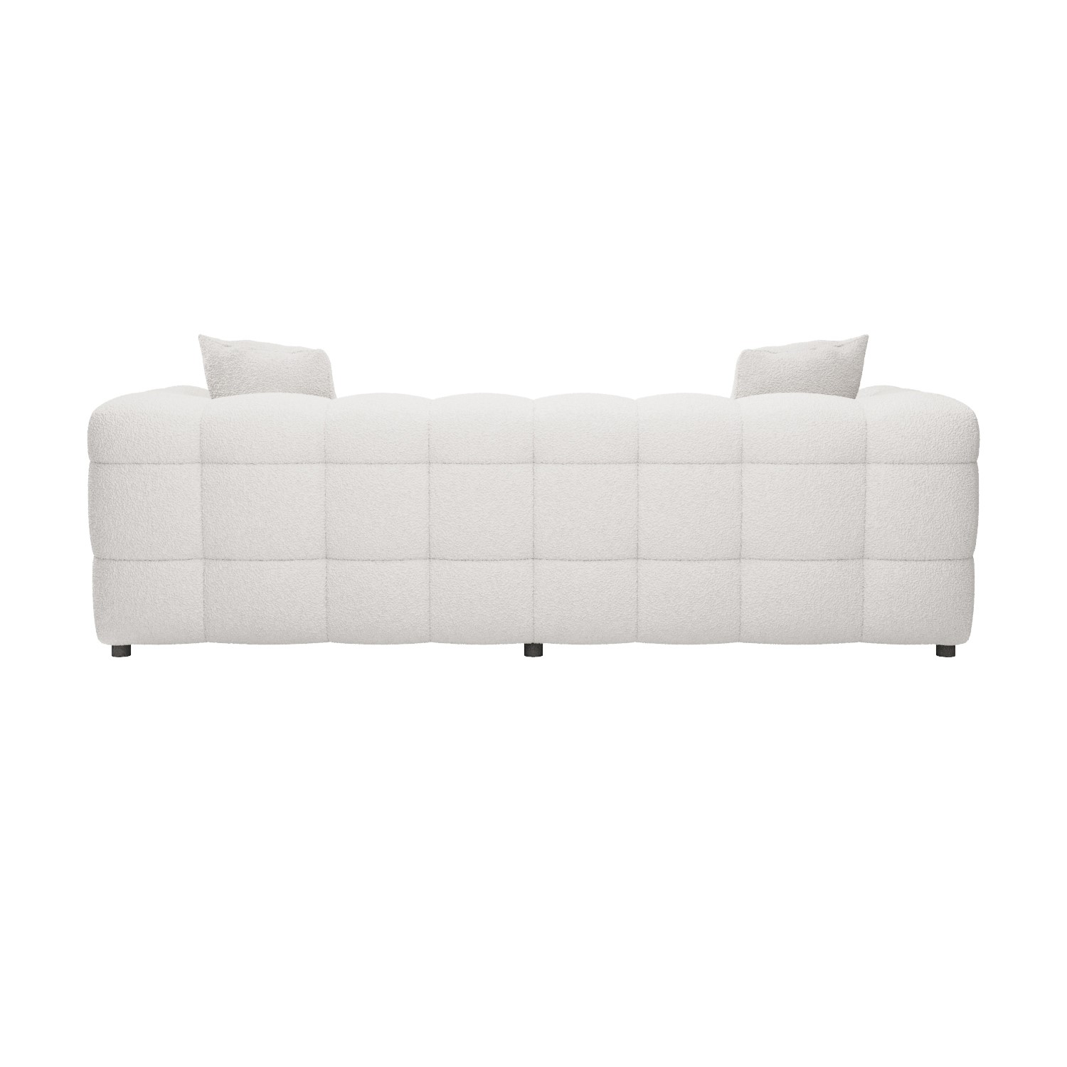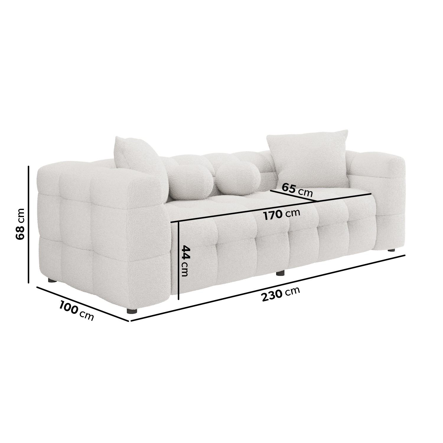 Looking to cosy up your space with something stylish and oh-so-comfy? The Alessia 3-seater sofa in modern bouclé brings a perfect mix of laid-back luxury and trendy design. Wrapped in a soft, textured bouclé and filled with a mix of foam and fibre, it offers a cloud-like feel with firm, cushioned support. The tufted design and round edges give it a modern feel with plenty of charm, while the 2 scatter cushions and 2 ball cushions complete the look and take the comfort levels up even further. The neutral, cream boucle finish makes Alessia the perfect, versatile sofa, sure to blend in seamlessly with your home décor, whether minimal and clean or contemporary and edgy.