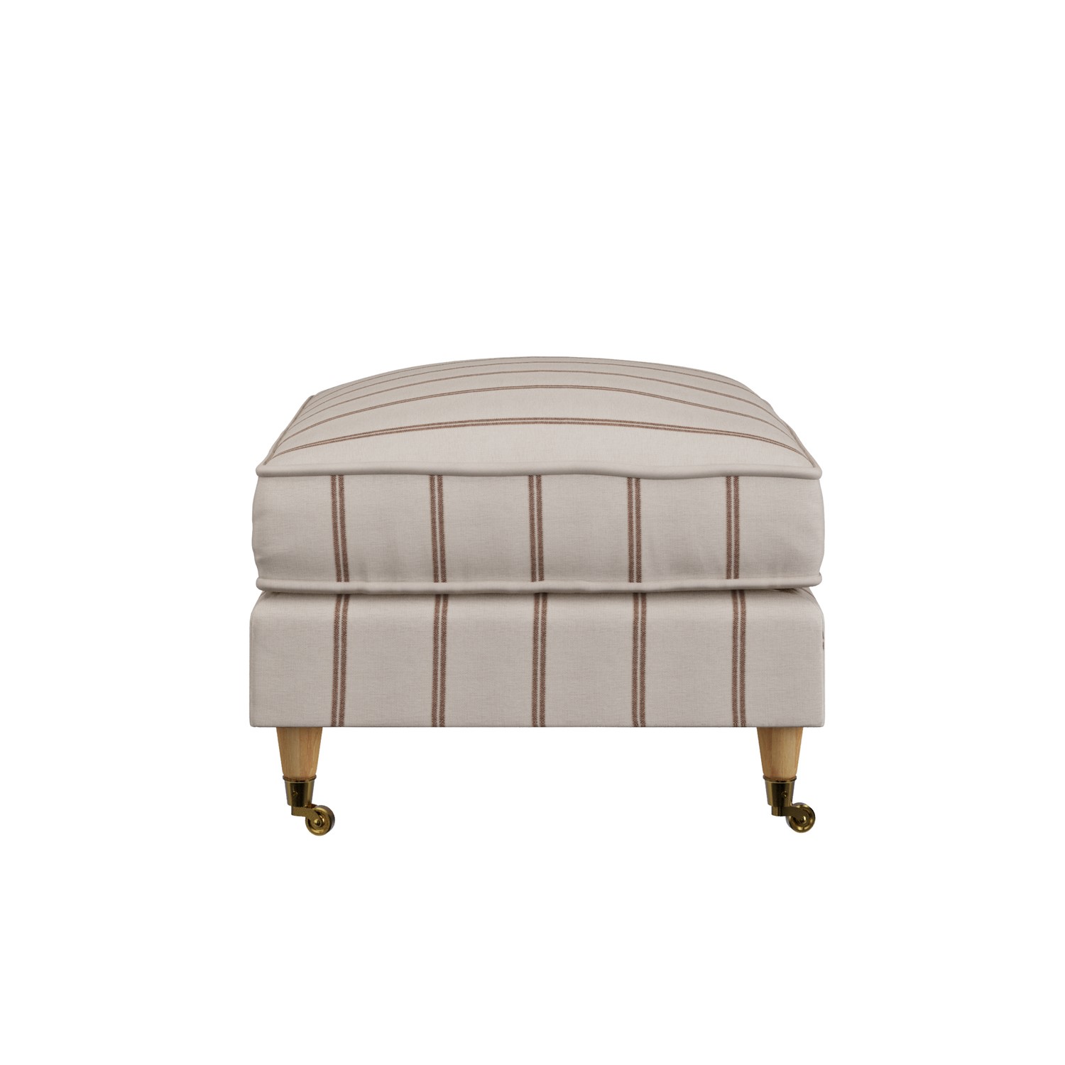 Add a charming and classic touch to any space in your home with this cosy Payton large cream with burnt orange stripe footstool. As well as its traditional design features, it’s so versatile; use it as an extra seat when you’ve a house full, place a tray on it and use it as a coffee table, or simply rest your legs and relax. The legs come complete with castor wheels, making it easy to move around. Plus, with a solid timber frame, it’ll stand the test of time. Dark wood legs are available to purchase on this product, just add yours from our package deals, recommended accessories or at checkout. This Payton range comes with light oak legs as standard.