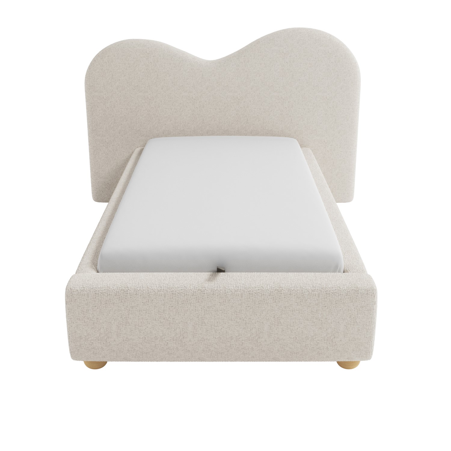 Elevate your bedroom with the Aria Ottoman Bed, a stylish blend of comfort, function, and versatile design creating a focal point in any bedroom. Upholstered in soft, cream textured fabric, it features a wide curved headboard for an inviting, sophisticated touch. Perfect for older kids and teens, this bed adapts to changing styles while offering generous ottoman storage with a solid base to keep things tidy. Also, this bed has a sprung slatted base for comfortable mattress support and fits a UK standard single-size mattress.