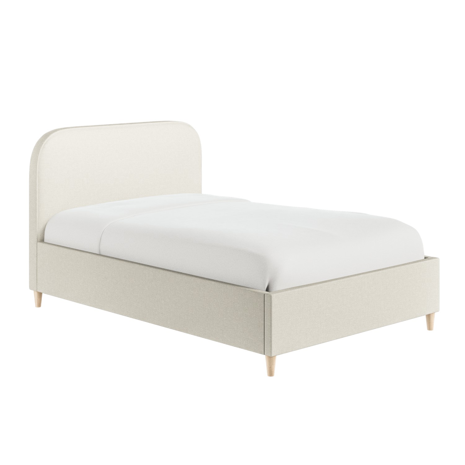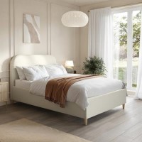 The Zara bed frame is perfect for lovers of minimalist style. This modern bed combines simplicity and comfort in one contemporary design. Featuring a thick, padded curved headboard upholstered in durable, soft-to-touch cream linen fabric and stylish tapered legs. Built with a sturdy wooden frame and a sprung-slatted base supported by central legs, this bed ensures long-lasting durability and stability. This bed fits a UK standard small double-size mattress.