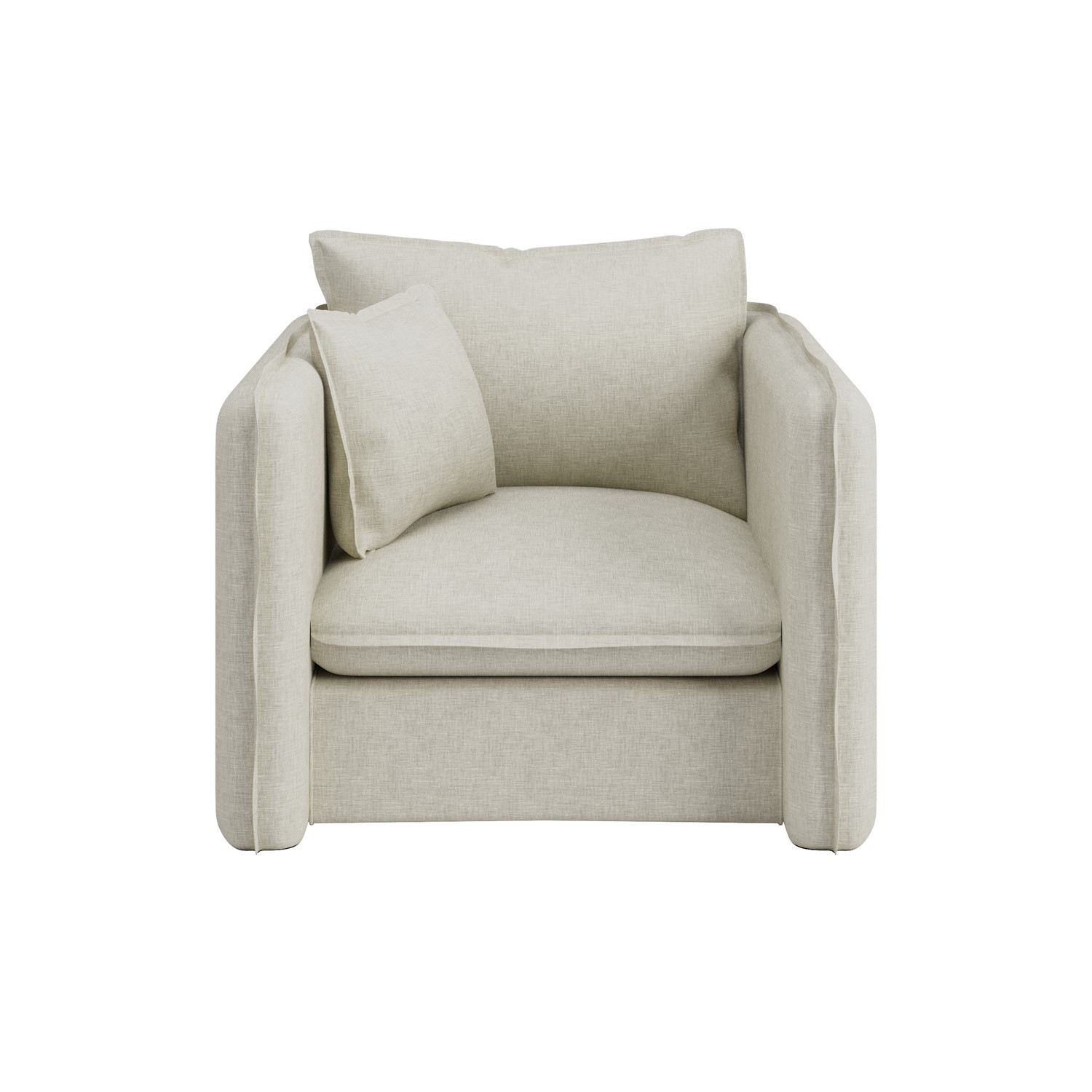Understated elegance: Relax in comfort and style with the Lorelai Armchair. Upholstered in a breathable cotton blend with a linen-effect texture, it brings a calm, contemporary vibe to any room.