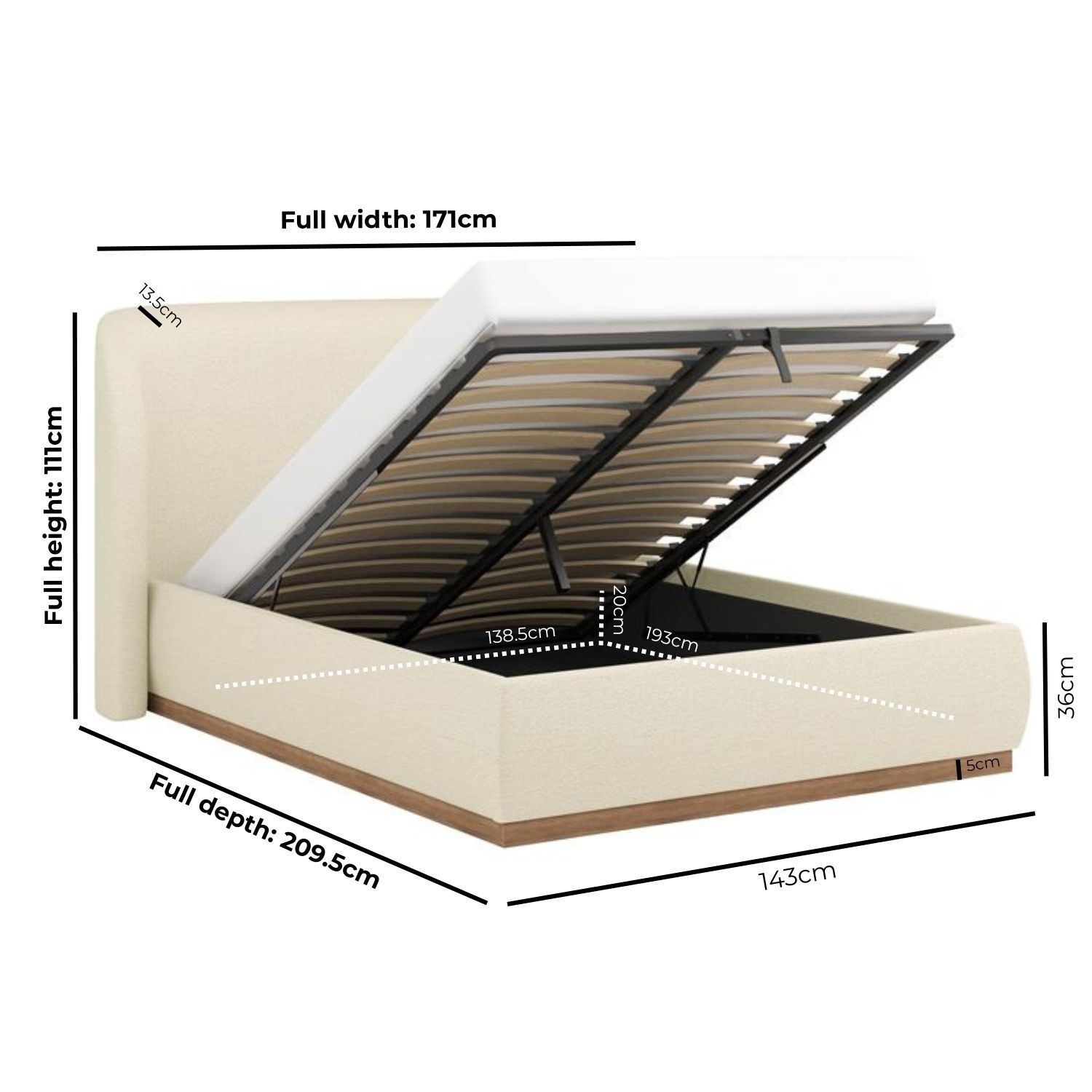 - Bed base: Wooden sprung slatted