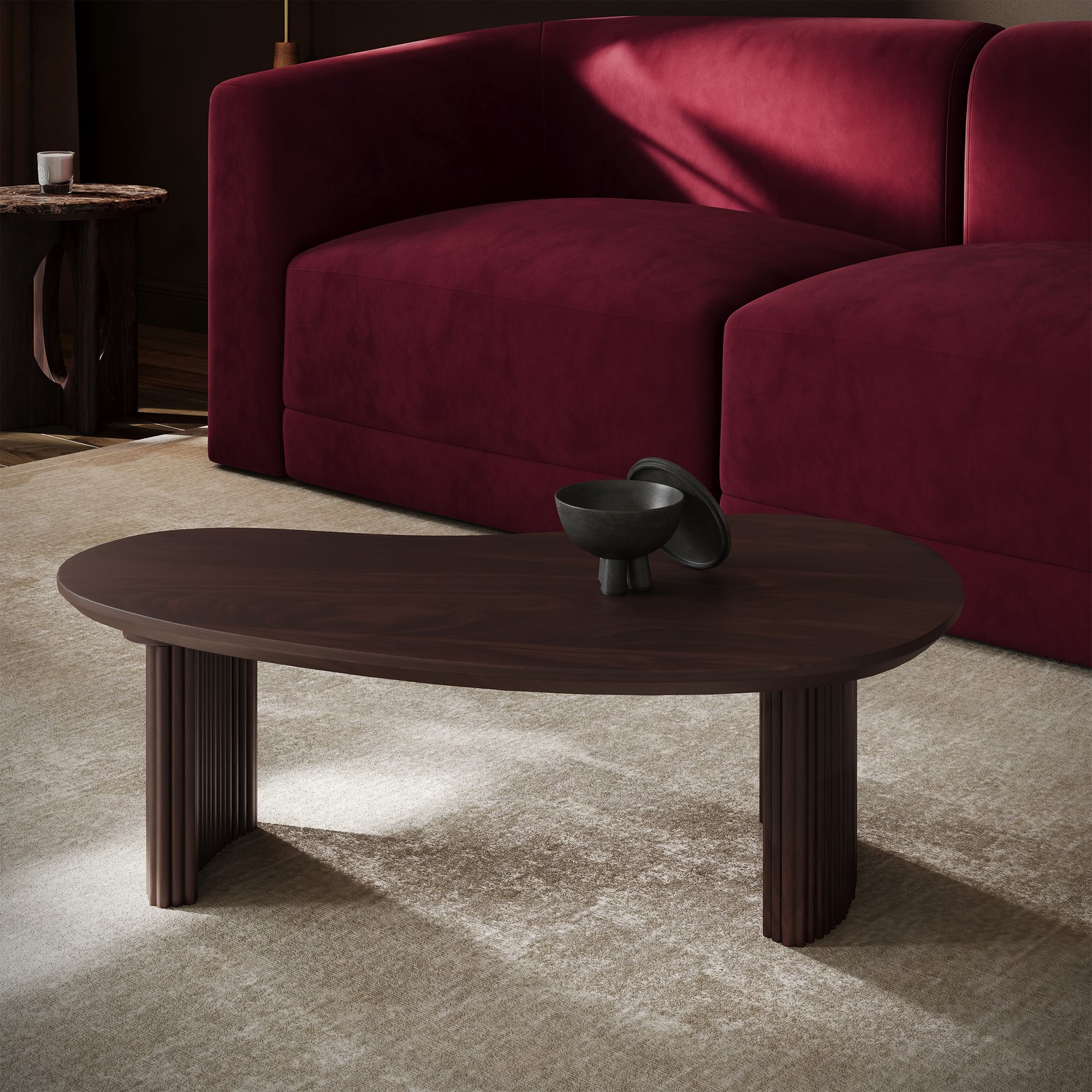 The Ivan Coffee Table is a versatile and chic addition to any modern or classic interior, offering both style and functionality to your home. Its unique kidney-shaped design and ribbed legs bring a contemporary elegance, while the dark mango wood adds warmth and character. Perfectly suited for both everyday use and special occasions, it pairs beautifully with its matching nesting counterpart for a cohesive and practical living space. Hand-crafted with attention to detail, this coffee table ensures durability and timeless appeal.