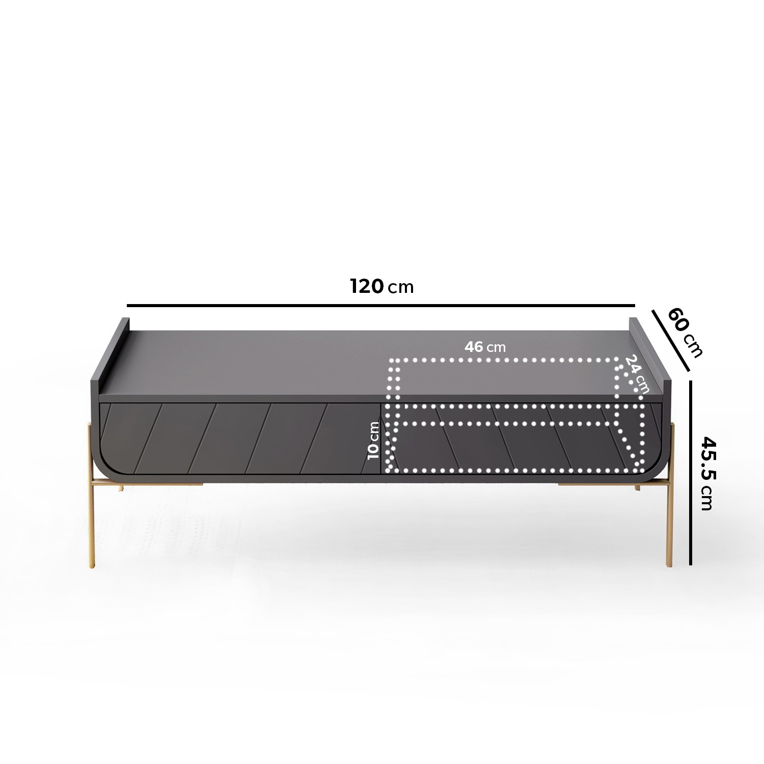 - Dimensions: H45.5 x W120 x D60cm