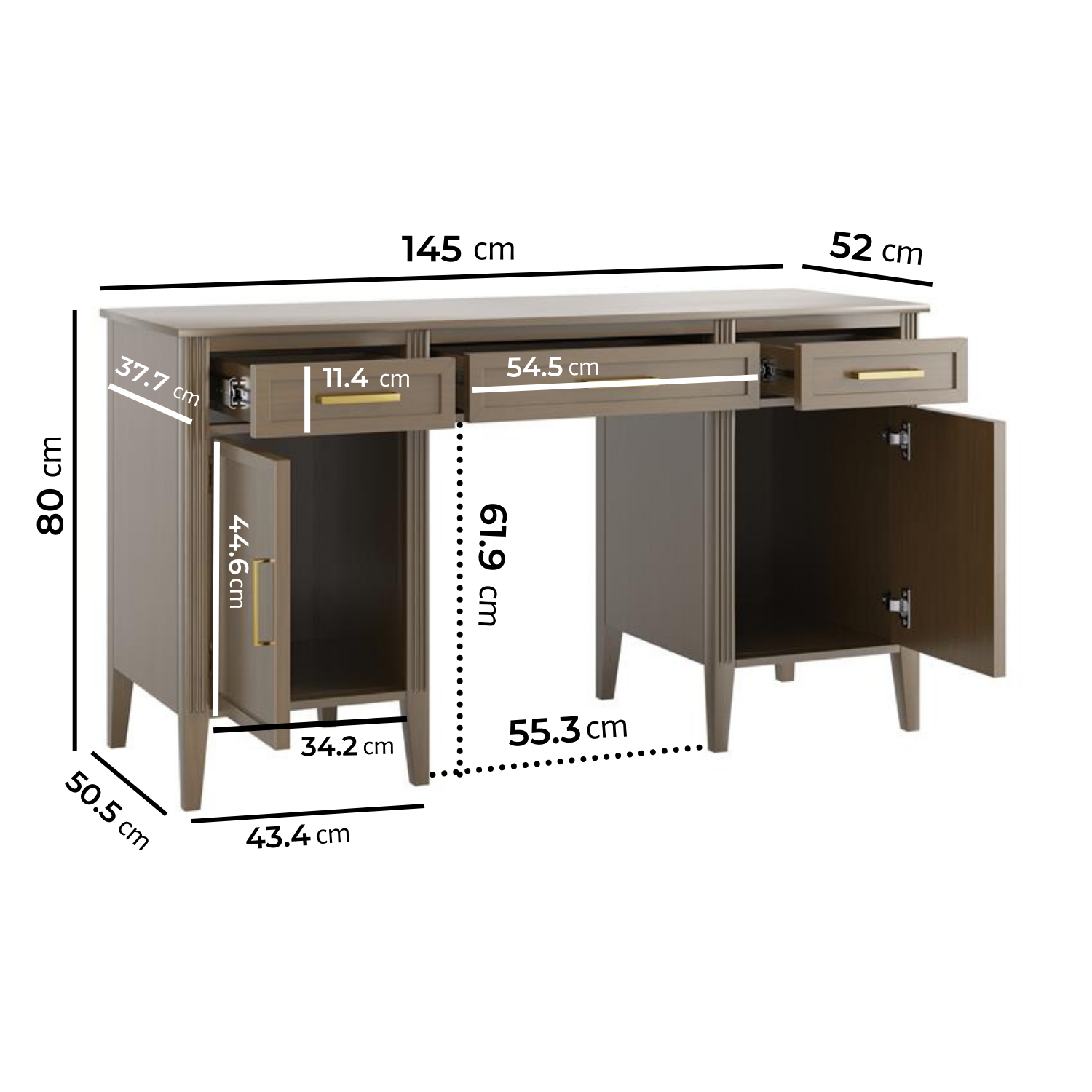 - Dimensions: W145 x D52 x H80 cm