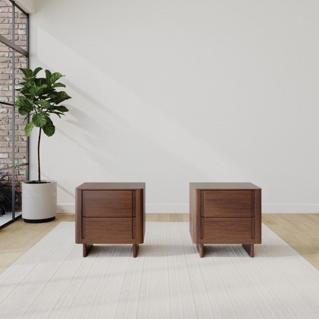 Complete your bedroom with this set of two bedside tables. They feature two drawers that are great for storing all your night-time essentials. The stunning dark wooden finish pairs beautifully with any bedroom interior.