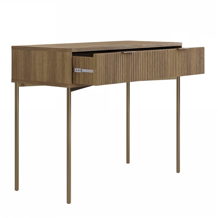 Create your dream makeup station with the Valencia dressing table, featuring two drawers for storing cosmetics. The textured oak effect drawer fronts create a stunning modern finish in any bedroom or dressing room. Perfect the look with the matching pieces in the Valencia bedroom furniture collection.
