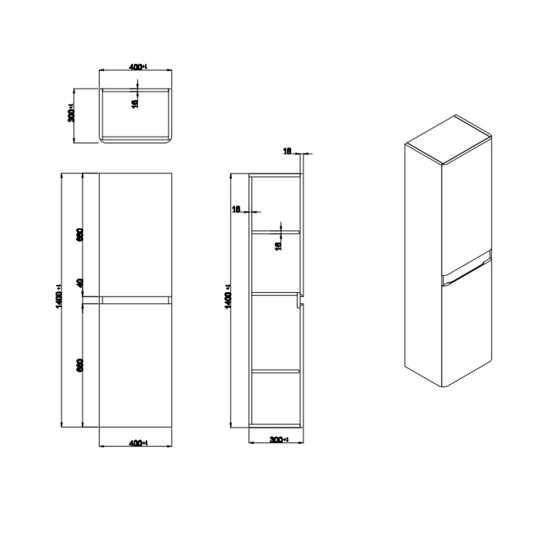 - Dimensions: H1400 x W400 x D300 mm (give or take -/+ 3mm per measurement)