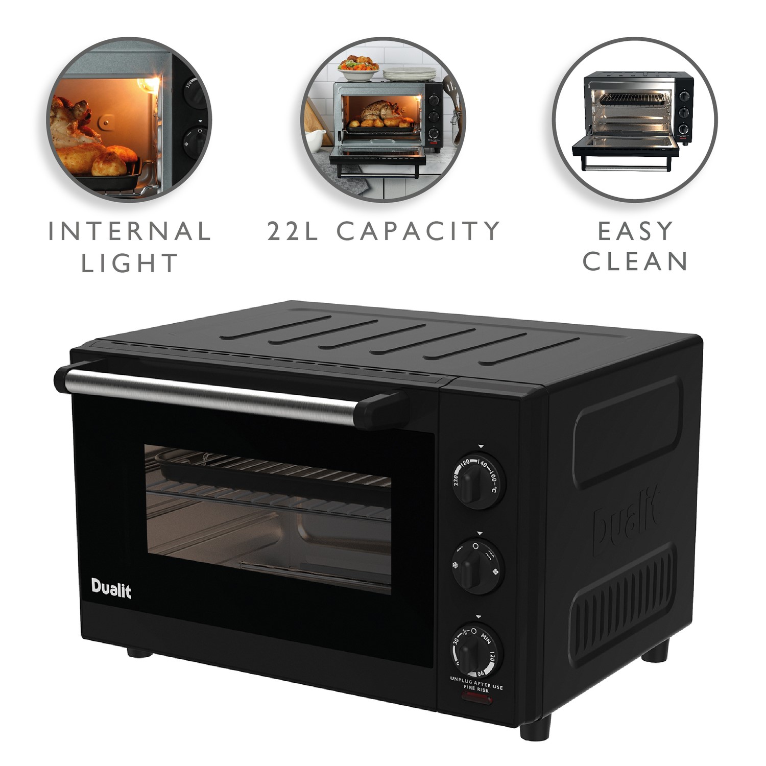 Dualit's Mini Oven is perfect for small kitchens or as an additional oven in busy kitchens. With multiple cooking functions, plus an internal light and non-stick interior, it makes an ideal space-saving solution.