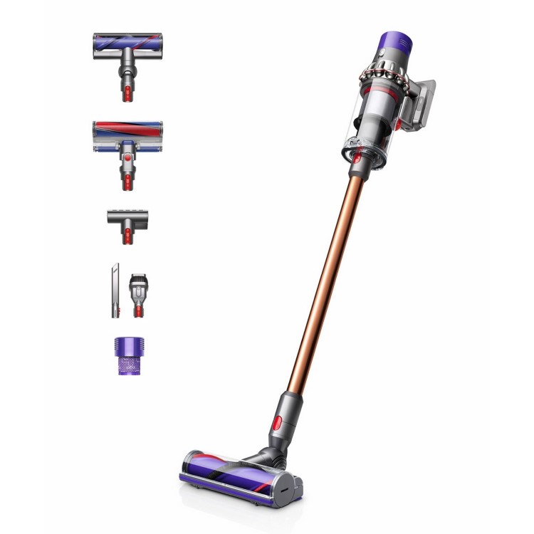 The Dyson V10 Absolute uses Direct Drive technology to eliminate dust and hair from all of your home’s surfaces – including carpet, laminate, parquet, stone, and tile. If you have a lot of hard surfaces to tackle, then make the most of the Soft Roller Cleaner Head too, which expertly removes large debris and fine dust all at once.