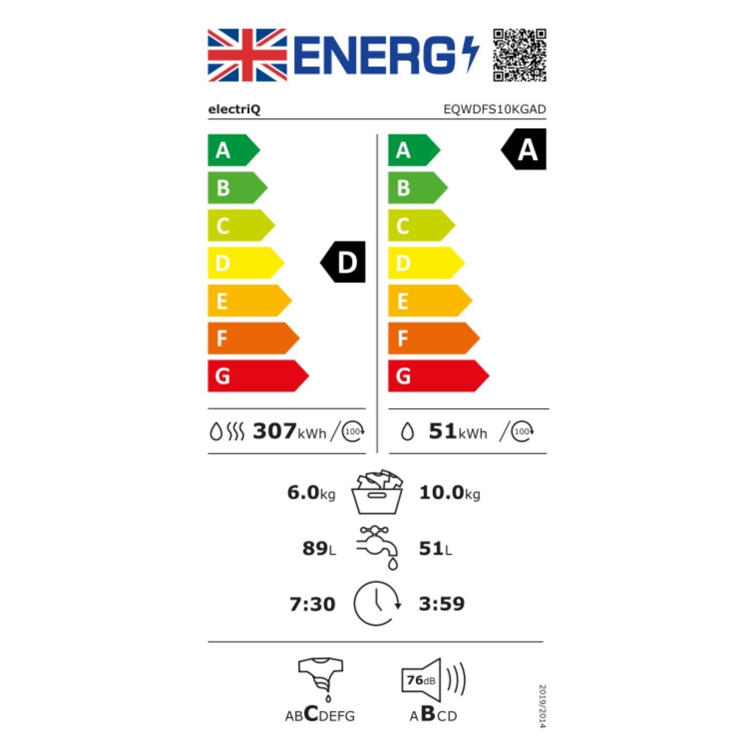 Handle all your family's laundry needs with the electriQ EQWDFS10KGAD Washer Dryer. This powerful machine offers a generous 10kg washing capacity and 6kg drying capacity, perfect for busy households. With 15 programmes including Eco, Wool and Anti-allergy options, plus the handy Reload function to add forgotten items, you'll enjoy cleaner clothes with less hassle. The energy-efficient B rating helps keep running costs down, while the 1400rpm spin speed means shorter drying times.