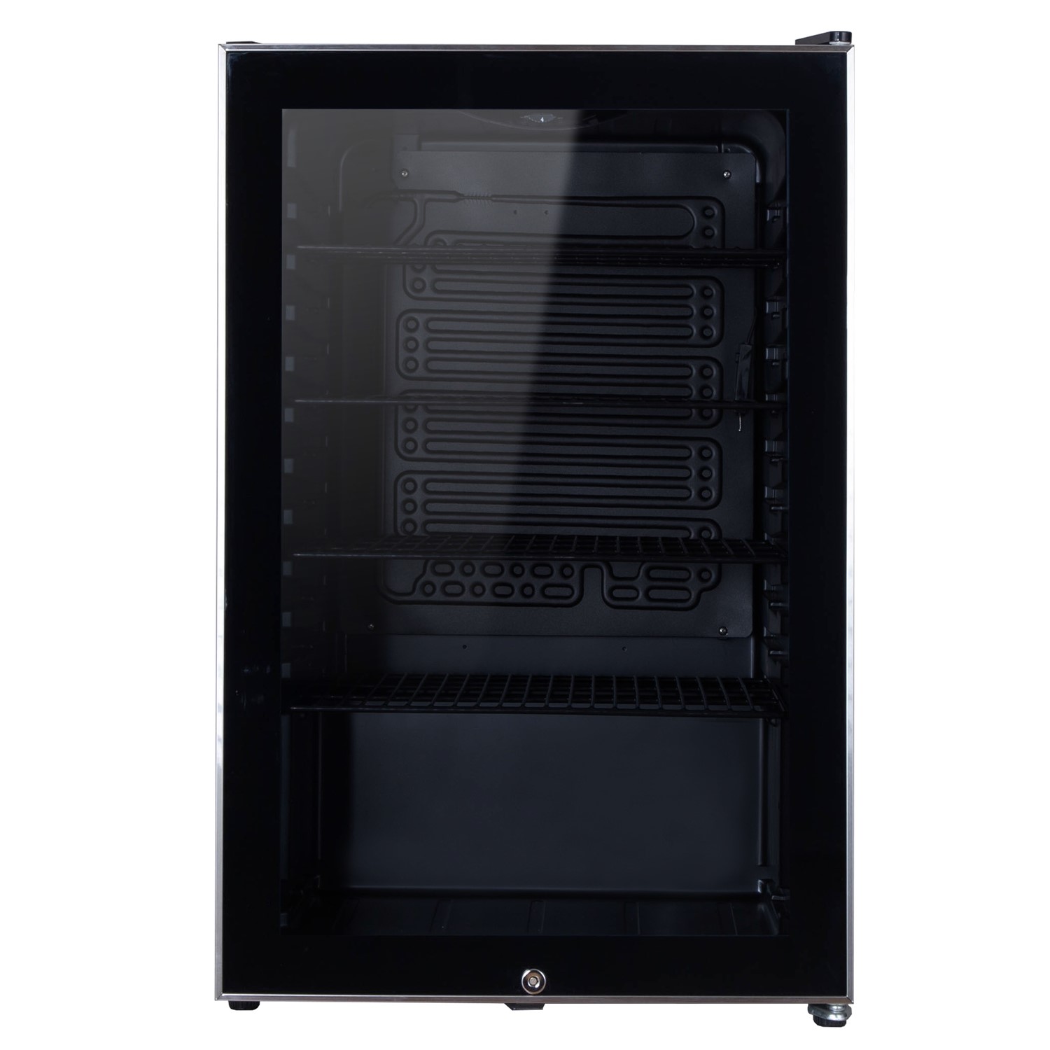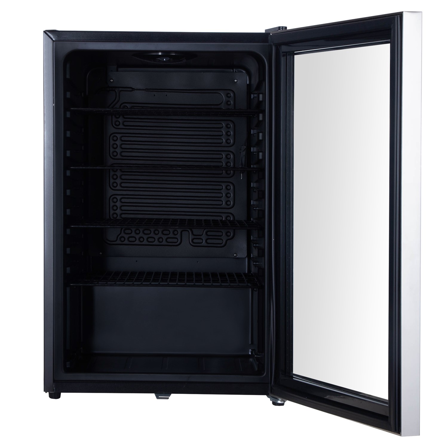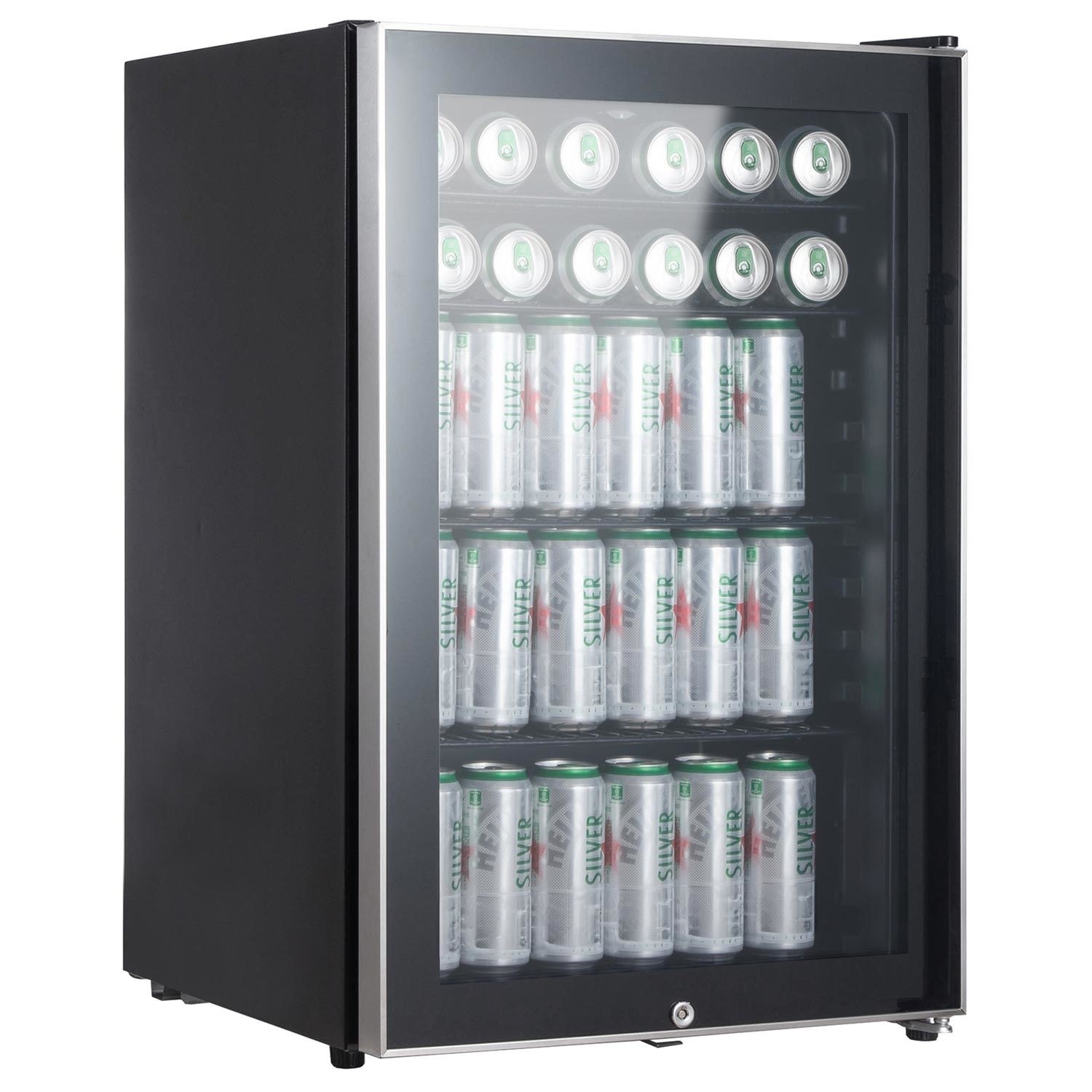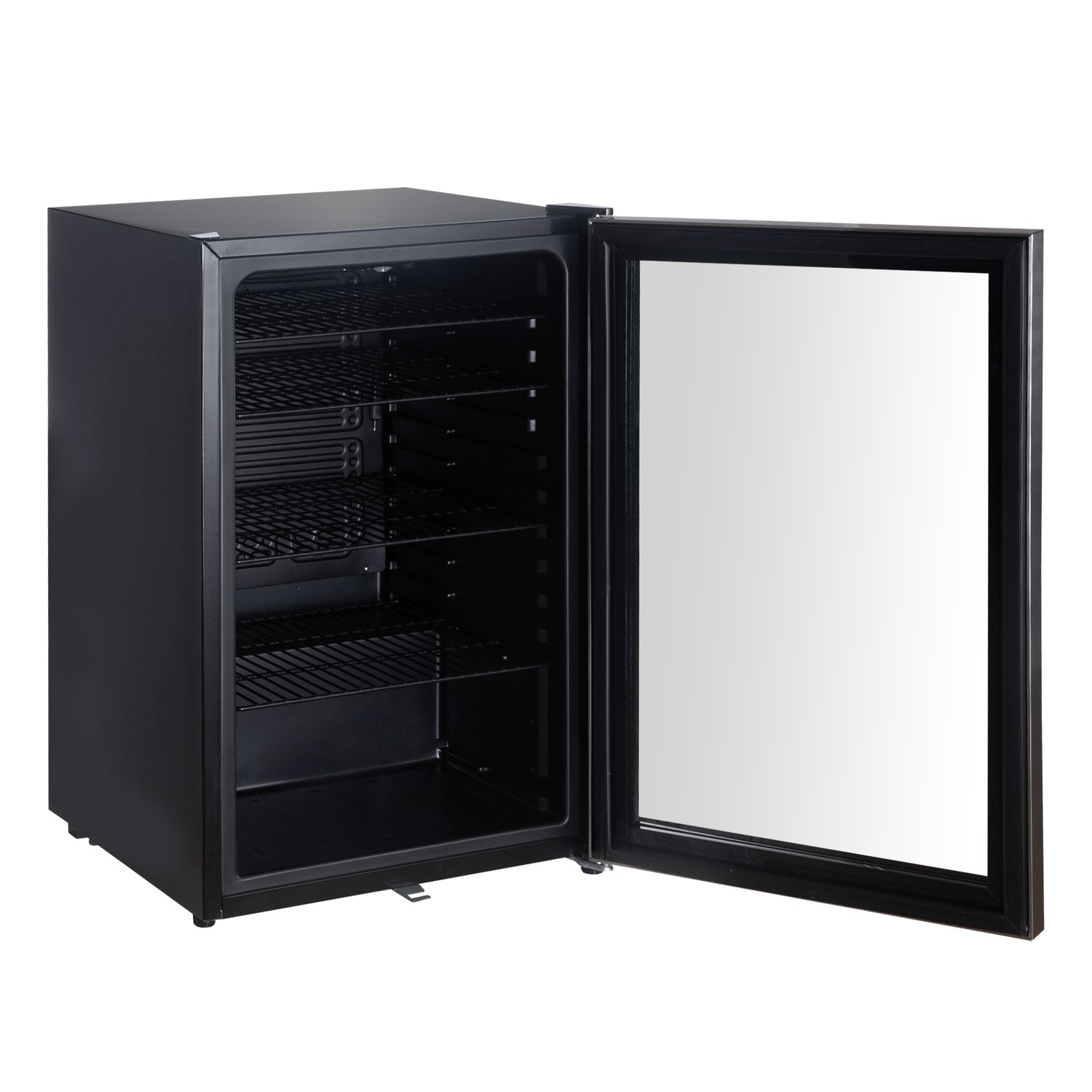 Looking for a cooler way to keep your favourite drinks and snacks close by? This drinks cooler is just the thing for you. With a sleek steel-trimmed door and a roomy 115-litre capacity, it can hold up to 162 standard 330ml cans on its four adjustable shelves - perfect for your home bar, office or garage. Plus, you can rest easy knowing that your drinks are secure with its built-in key lock. And, with its internal LED light, you can easily find what you're looking for, even in the dark. Cheers to convenience. The appliance is compressor-driven.