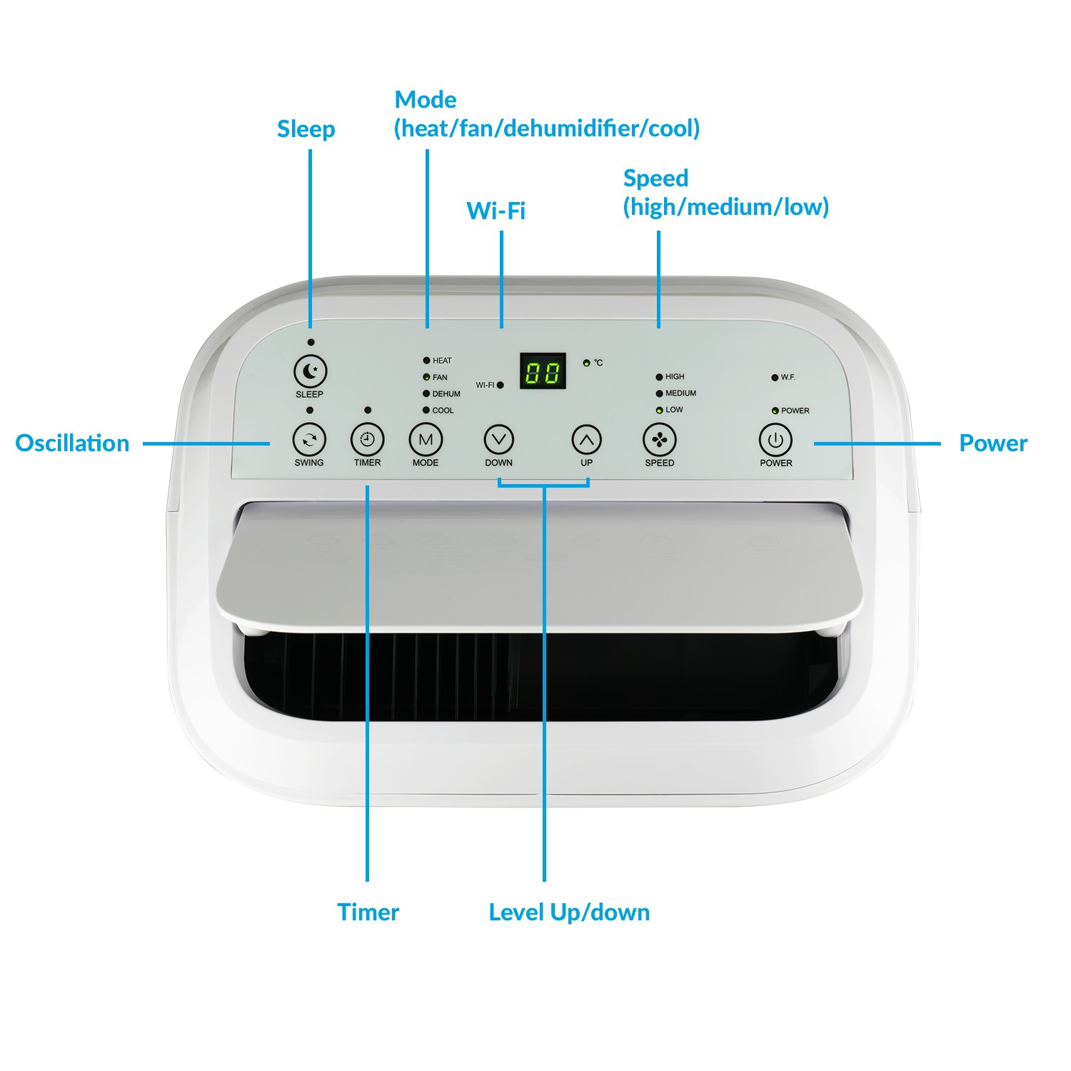 electriQ 12000 BTU SMART WIFI App-controllable Portable Air Conditioner heatpump for rooms up to 30 sqm - Alexa Enabled