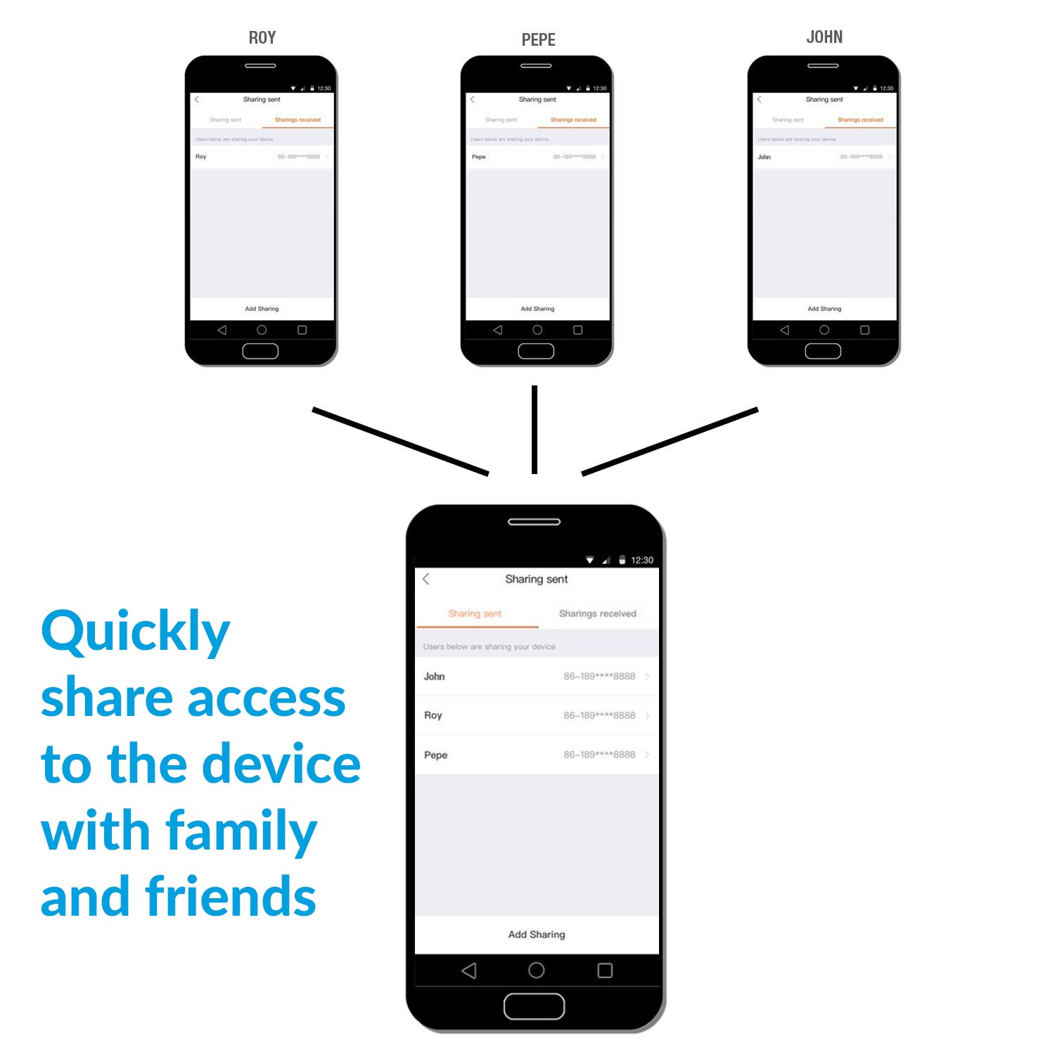 Easy to share - Give your family or co-workers access to the device and its settings via simple QR code sharing.
