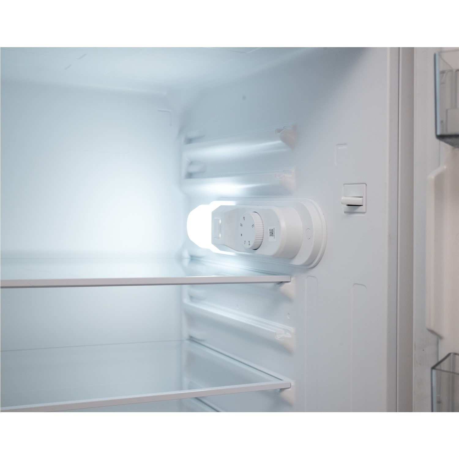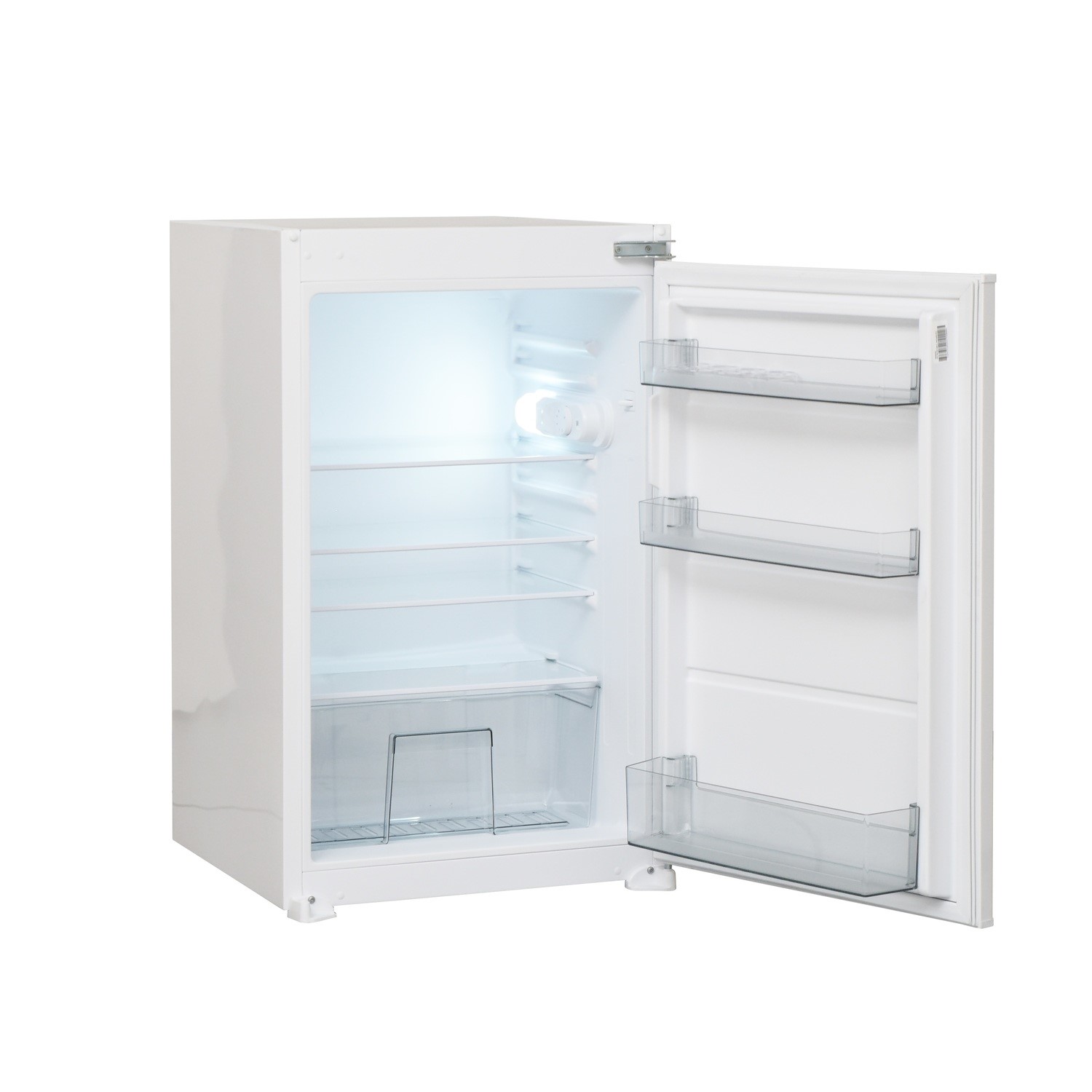 This built-in larder fridge offers 126L of fresh food storage making it ideal for integrated kitchen layouts. Designed for in-column installation, it sits neatly behind your cupboard door for a streamlined look. Inside, four removable shelves and a crisper cover provide flexible storage options, while the dedicated salad crisper keeps fruit and vegetables fresh and organised. Three door balconies allow you to store bottles, cartons, and jars upright and within easy reach. The LED interior lighting ensures excellent visibility throughout the fridge, and the reversible door allows you to adapt the opening direction to suit your kitchen configuration.
