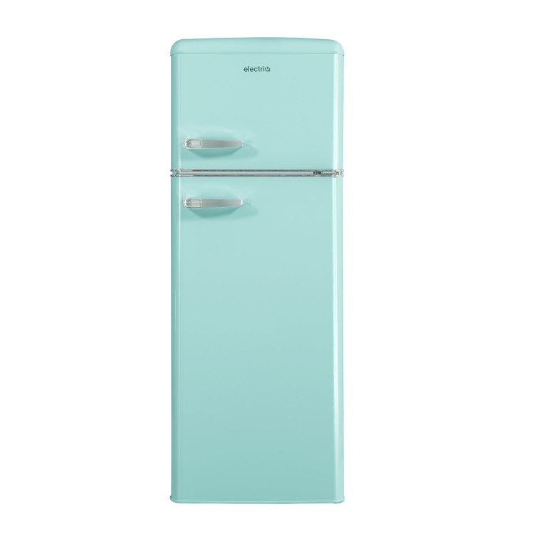 This blue retro-inspired fridge freezer offers excellent style and functionality to any kitchen. The 50’s design displays a lot of character, and the chrome accents add to the appeal. The appearance is just the start with this appliance, as it also offers a generous 164L fridge space and a 44L freezer space – perfect for medium-sized families, fitting around ten bags of shopping inside. The height-adjustable glass shelves make it easier to fit bulkier items in the fridge and help you to separate raw and cooked foods, also including the three door balconies which are perfect for storing taller bottles.