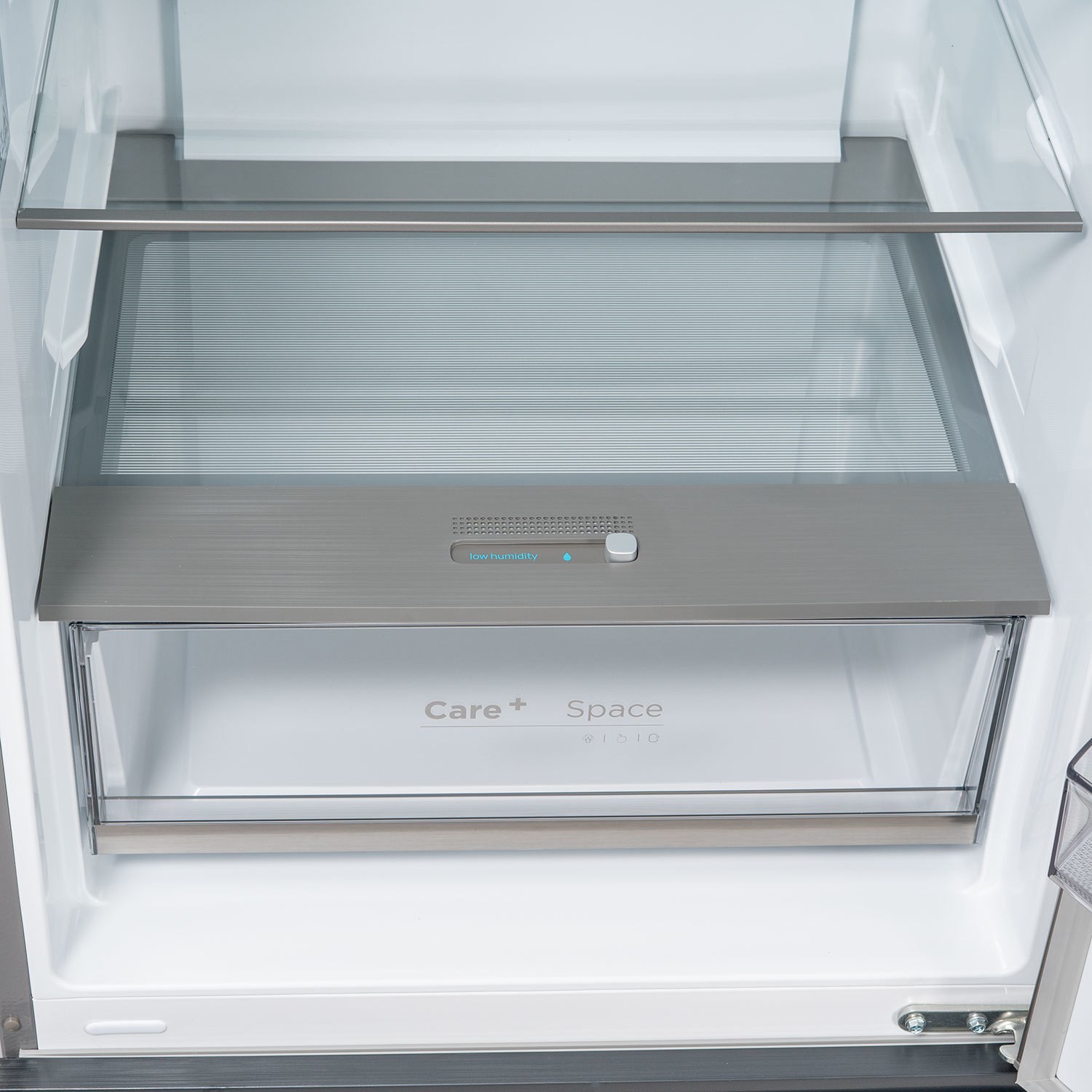 Thanks to the clever Space Pro design, this fridge freezer offers an impressive 400L capacity without increasing the overall size. The Care+ drawer keeps fruit and vegetables fresher for longer, helping to reduce food waste. Generous storage is provided with a 60/40 split, making it easy to organise fresh and frozen foods. The stainless steel finish adds a modern touch and ensures a seamless fit with a wide range of kitchen styles.